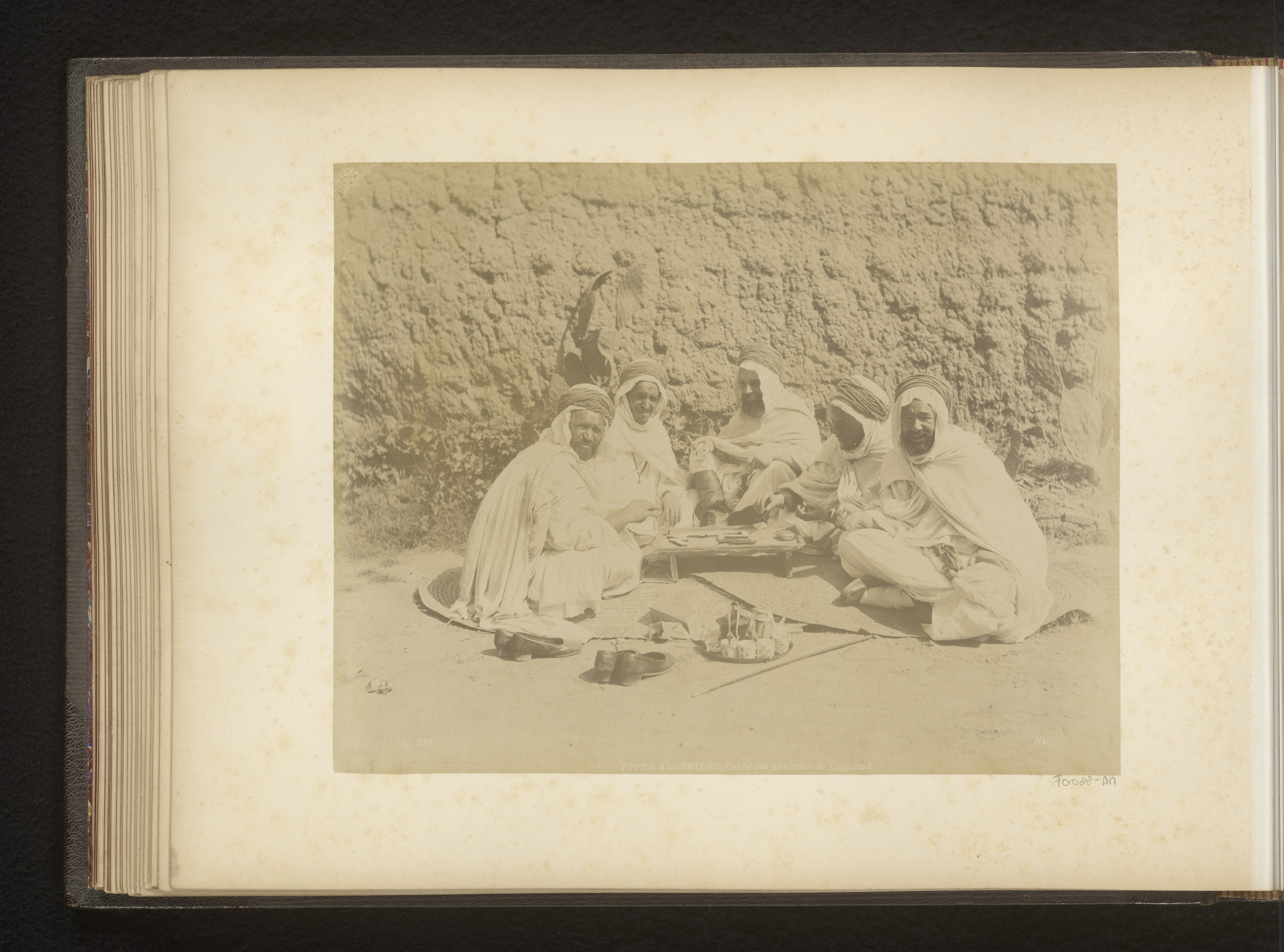 Groep caïds met een spel en thee