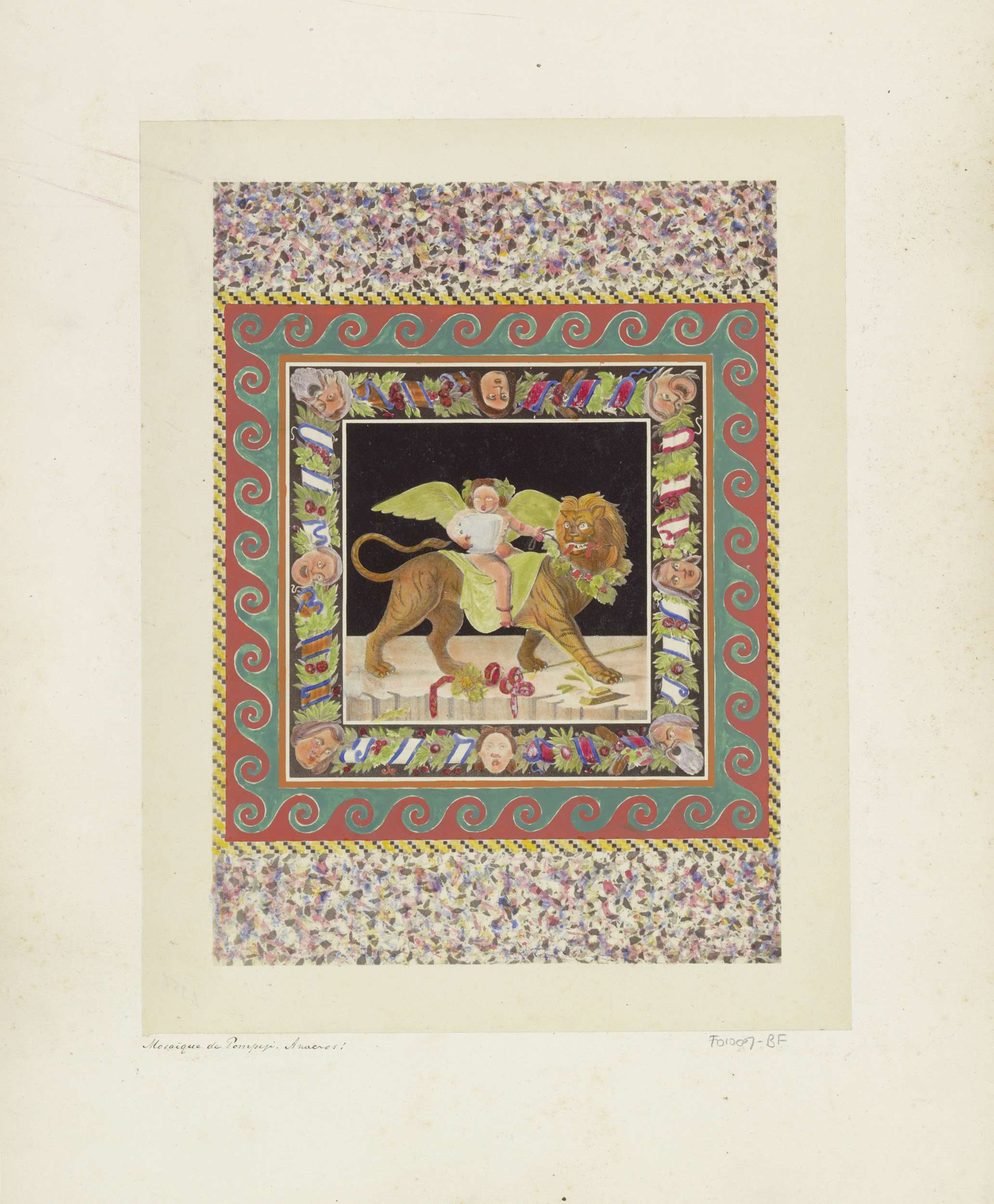 Mozaïek van het kind Dionysos schrijlings zittend op...