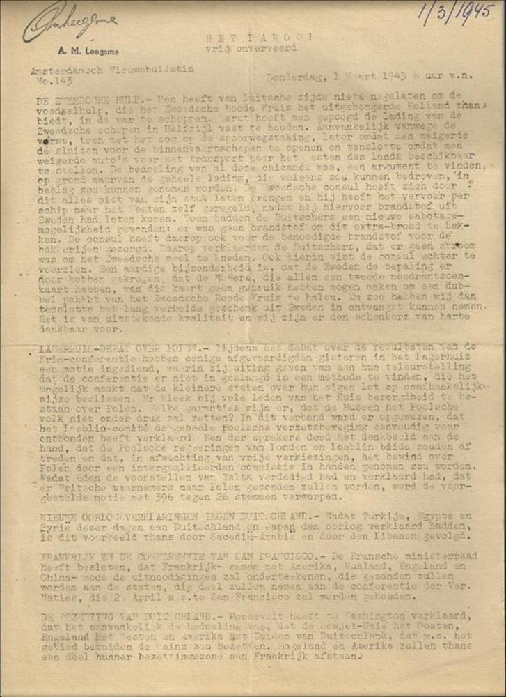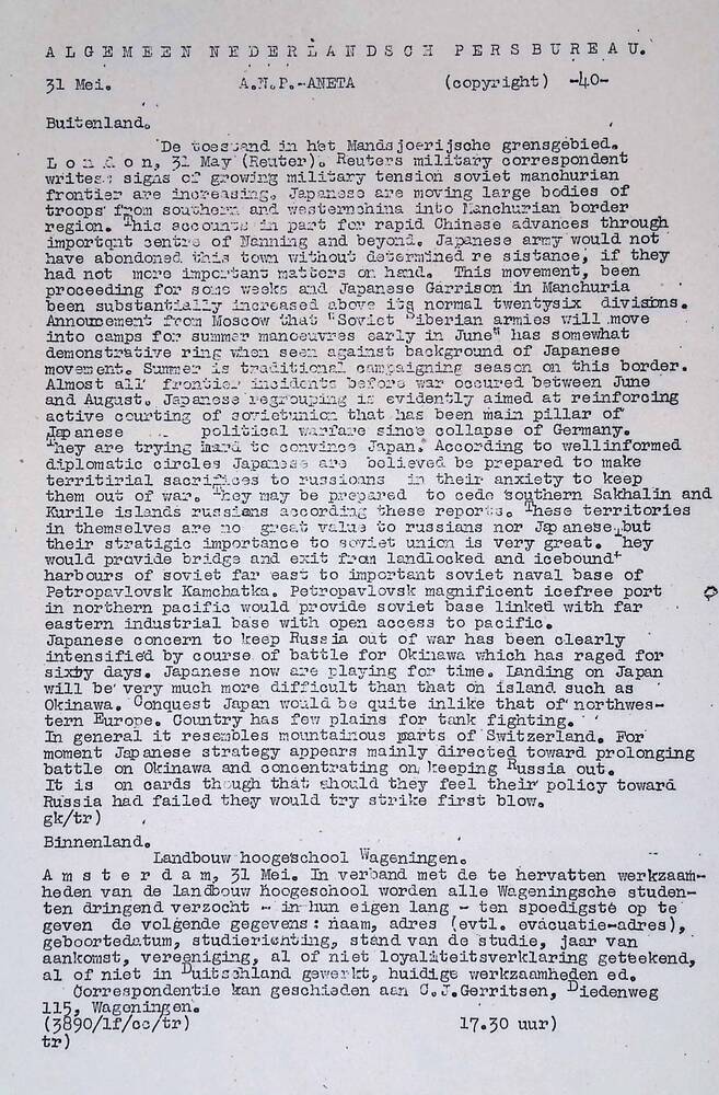Algemeen Nederlandsch Persbureau, mededelingen, 28 m...