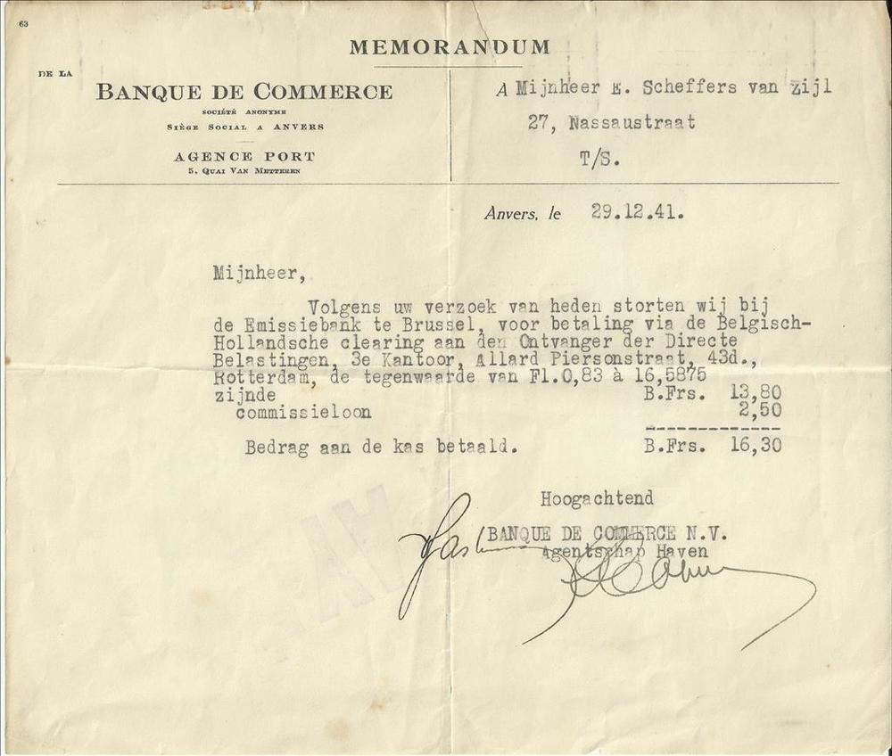 Memorandum van de Banque of Commerce - dhr Scheffers...