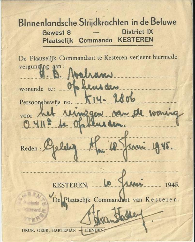 Vergunning verleent door de plaatselijke Commandant ...