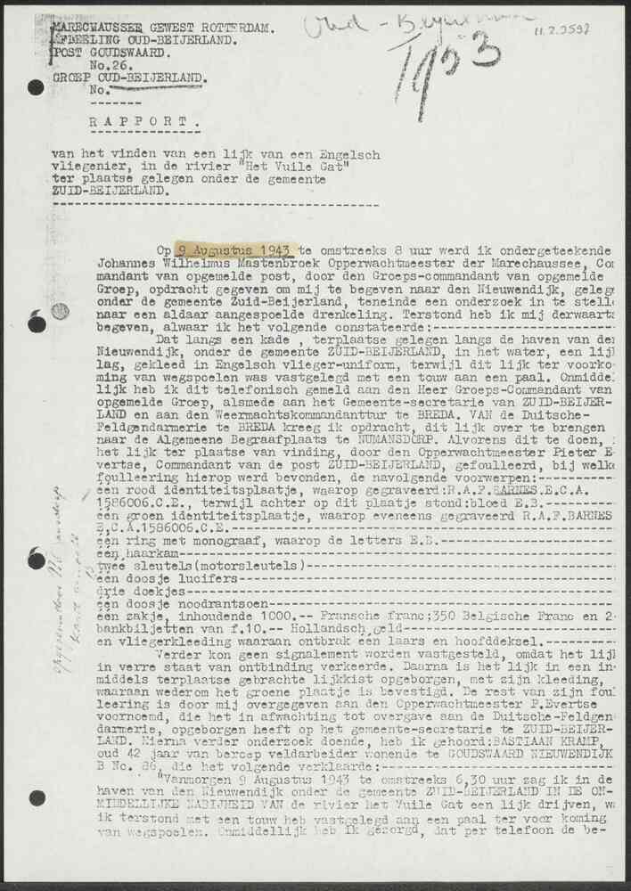 Rapport Marechaussee gewest Rotterdam afdeling Oud- ...