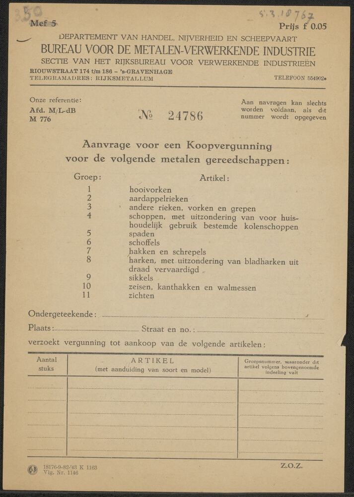 Aanvraage voor een koopvergunning voor de volgende m...