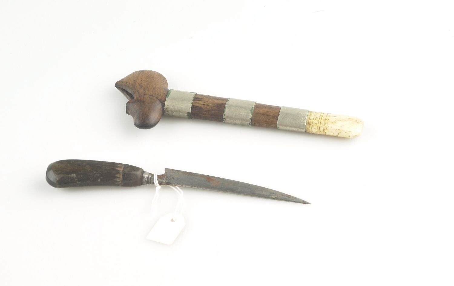 Mes voorzien van een hoornen heft en een houten sche...