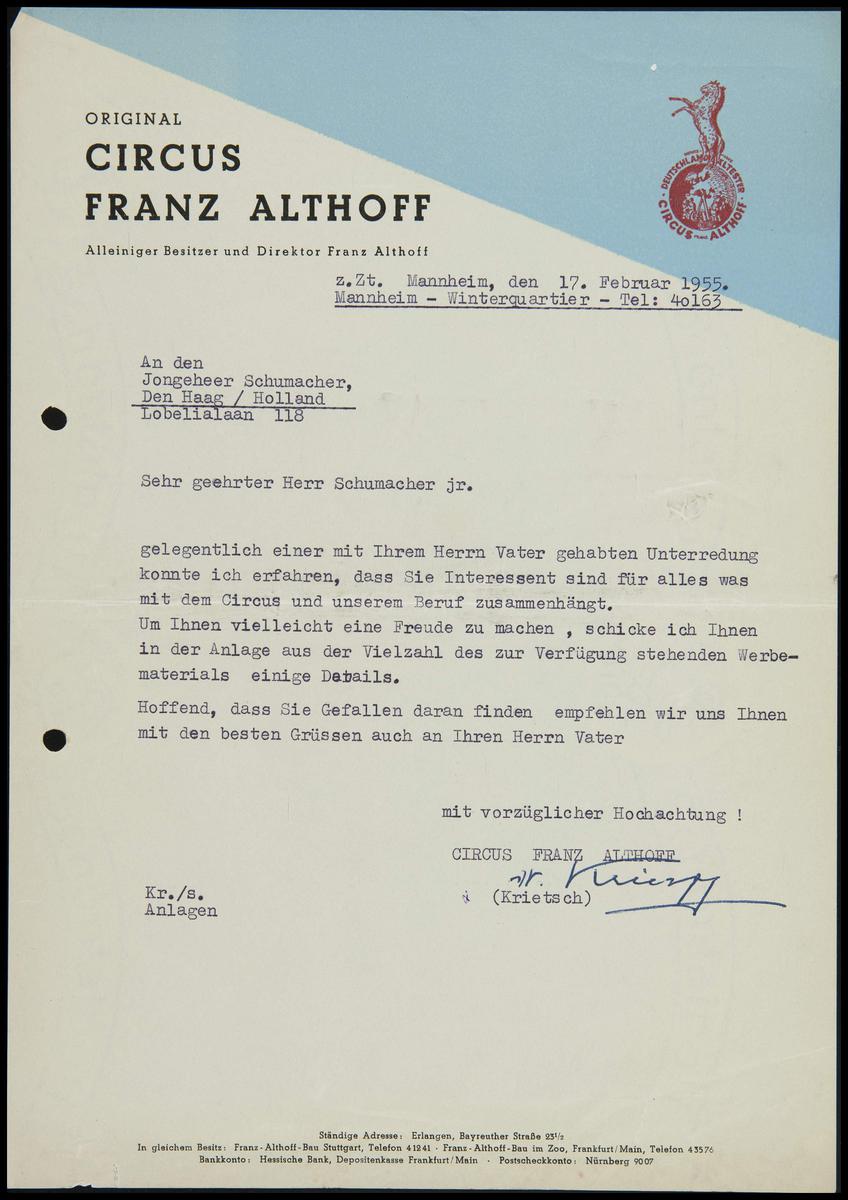 Brief Circus Franz Althoff