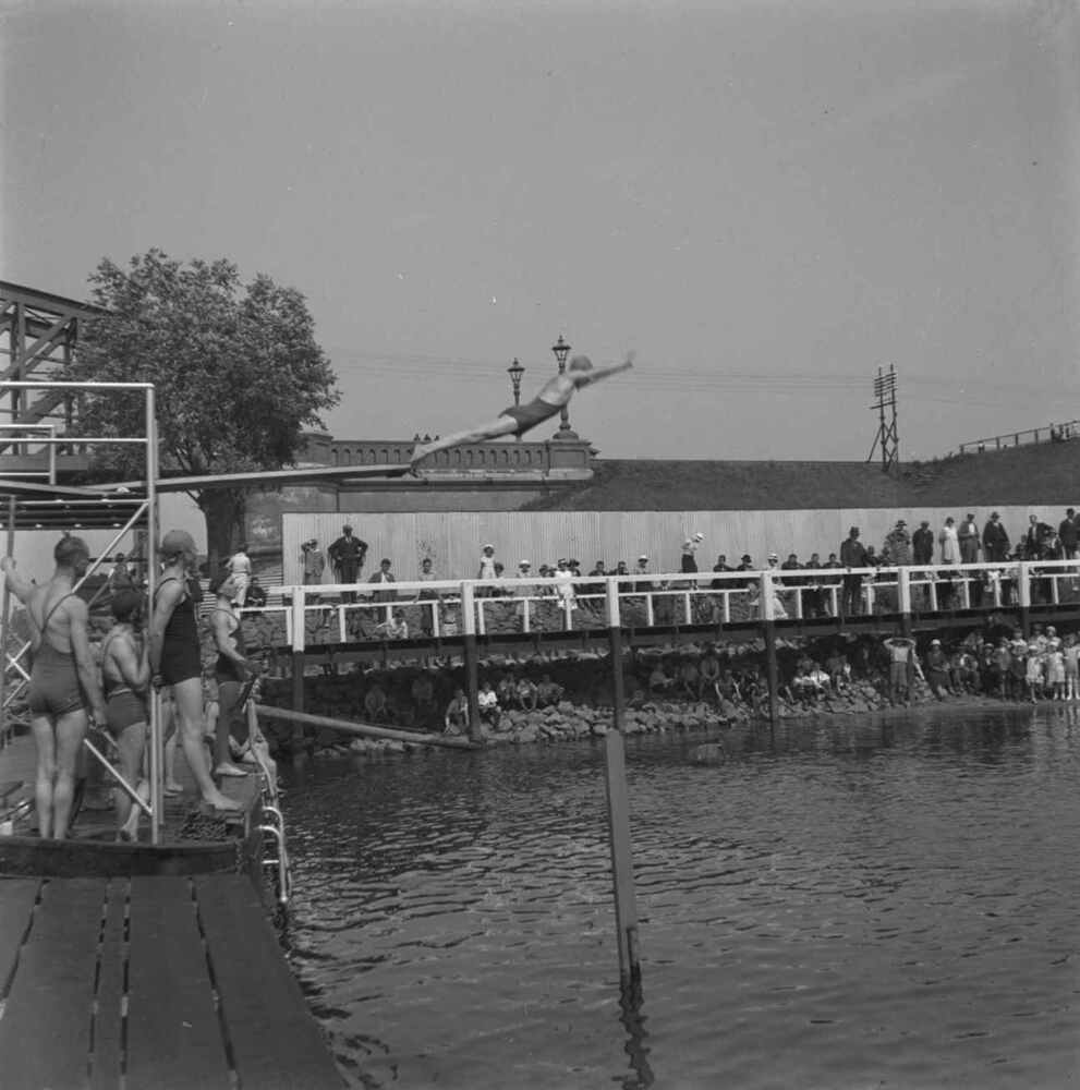 Foto, voorstellende de opening van het nieuwe zwemba...