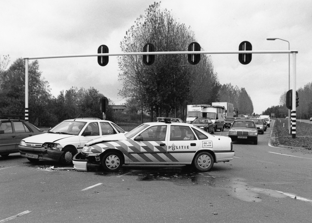 Botsing tussen politieauto en personenauto tijdens a...