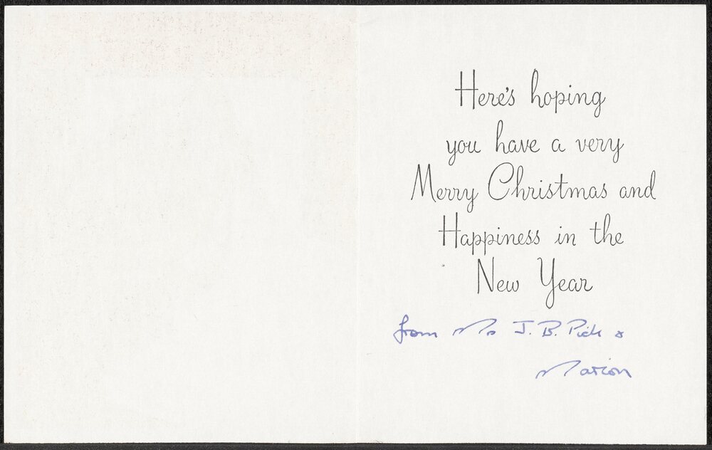 Kerstkaart van J.B. Pick and Marion aan mr. & mrs. v...