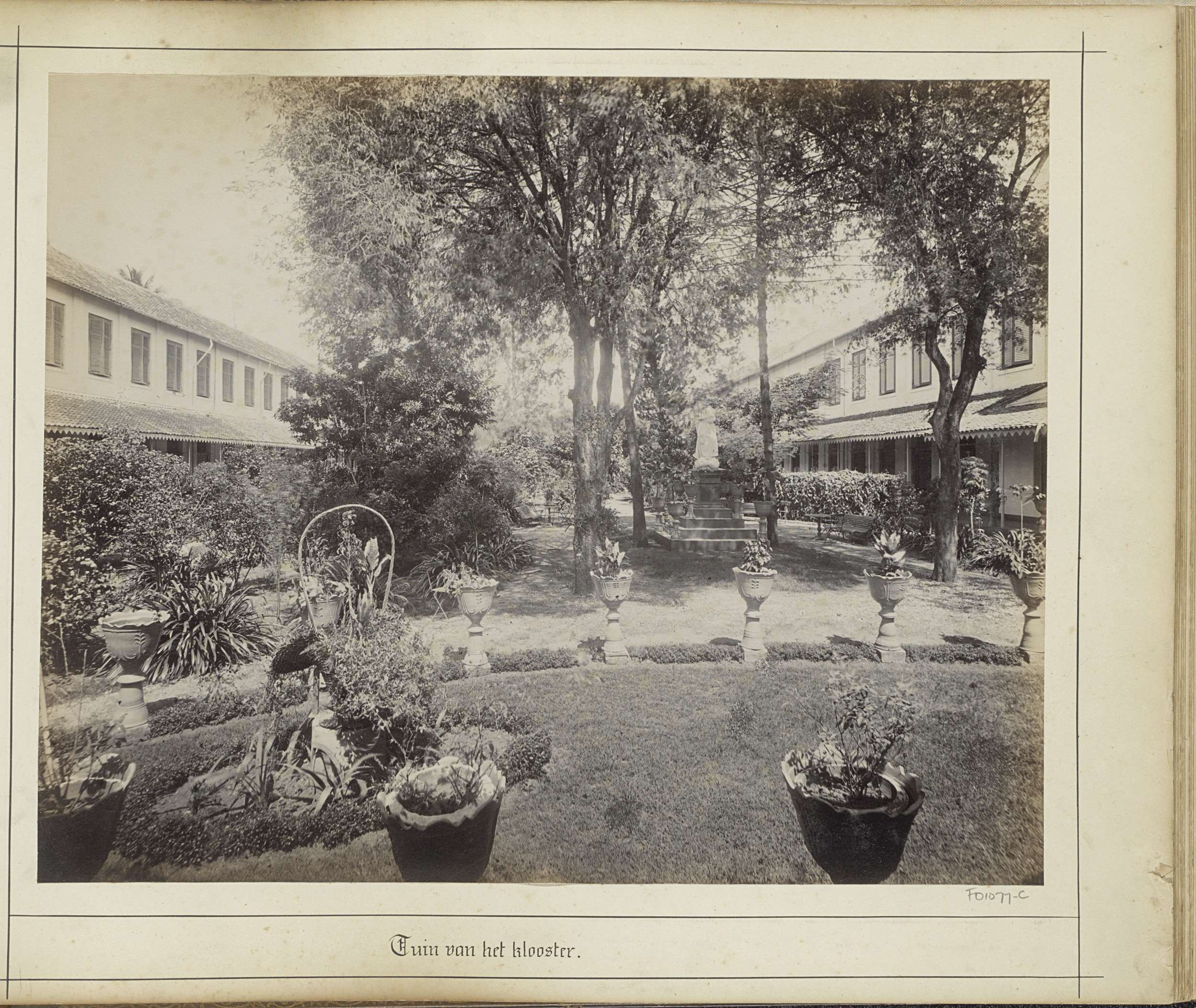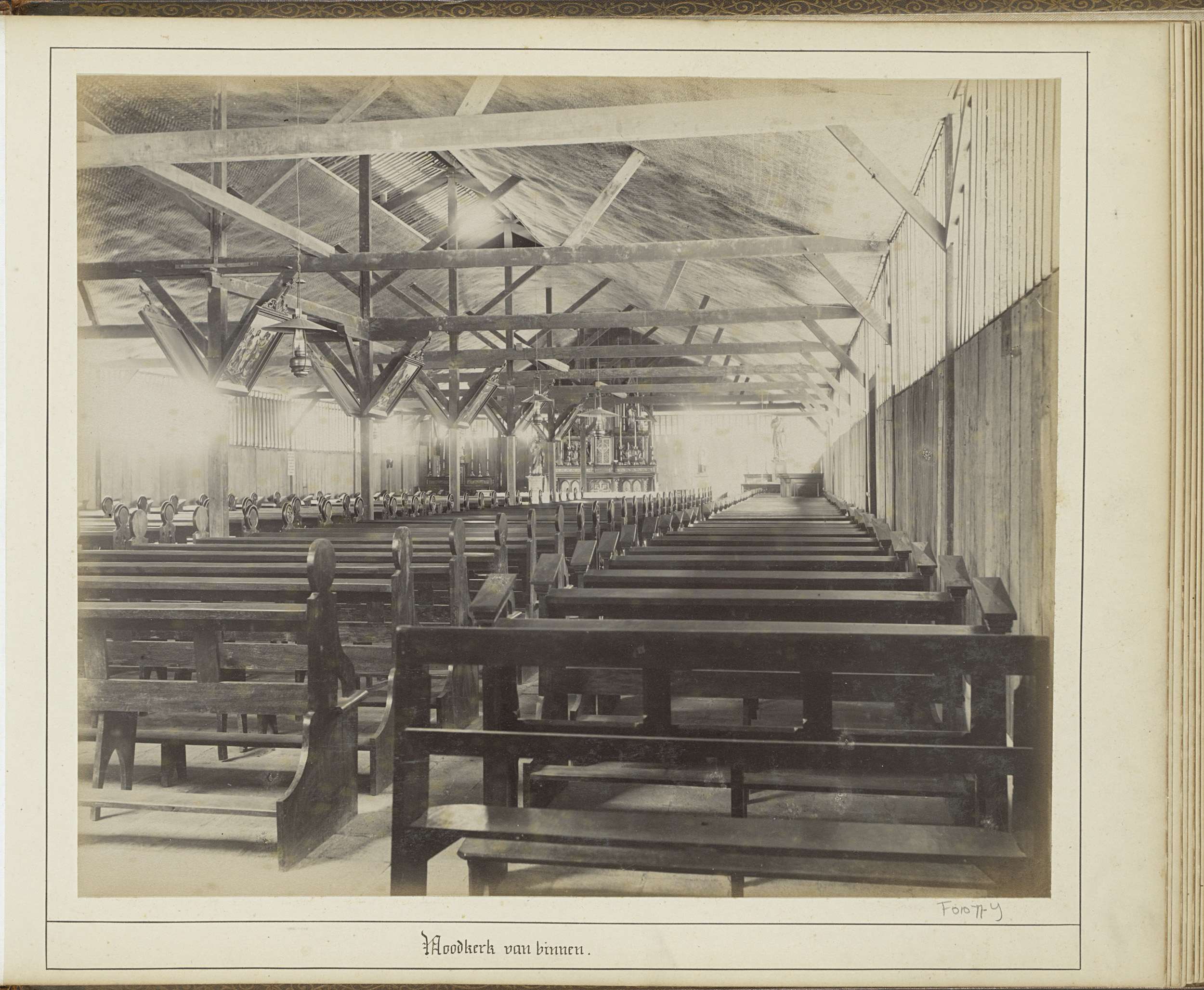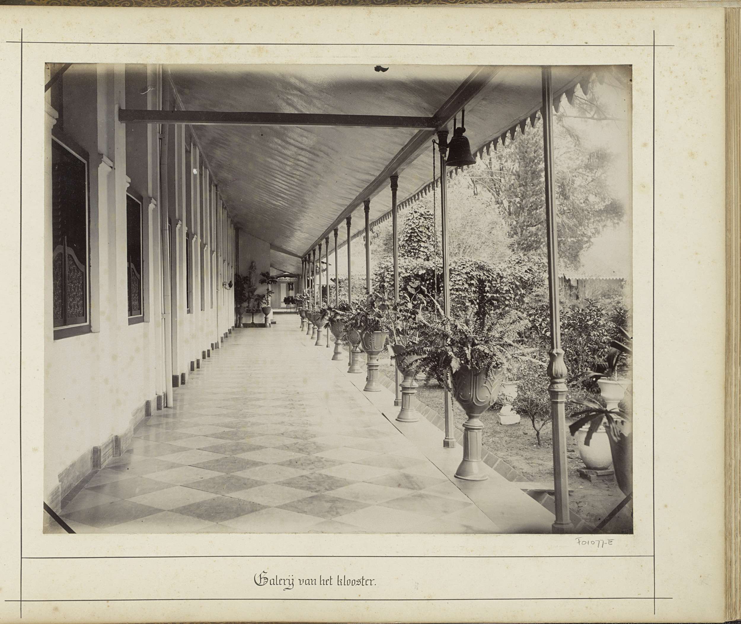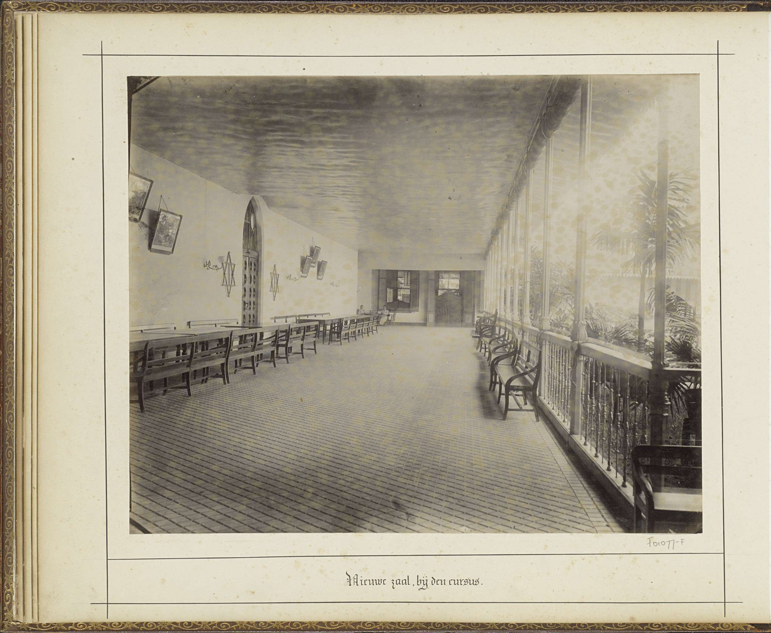 Zaal met banken in het Ursulinenklooster in Weltevreden