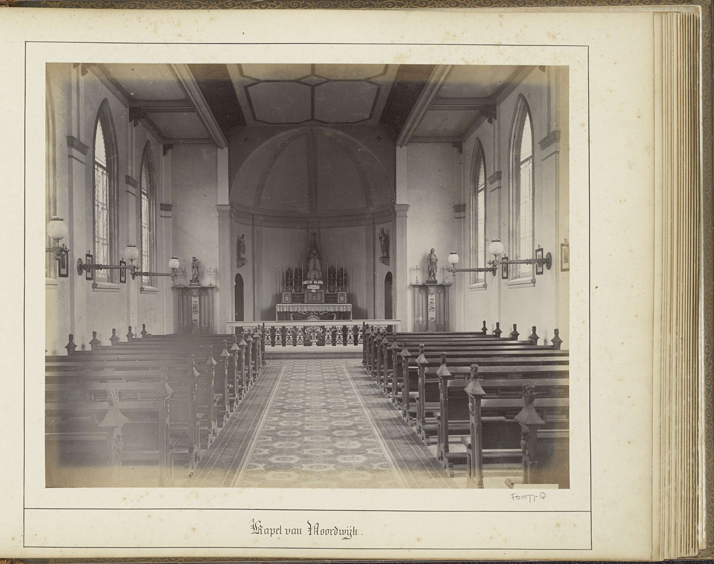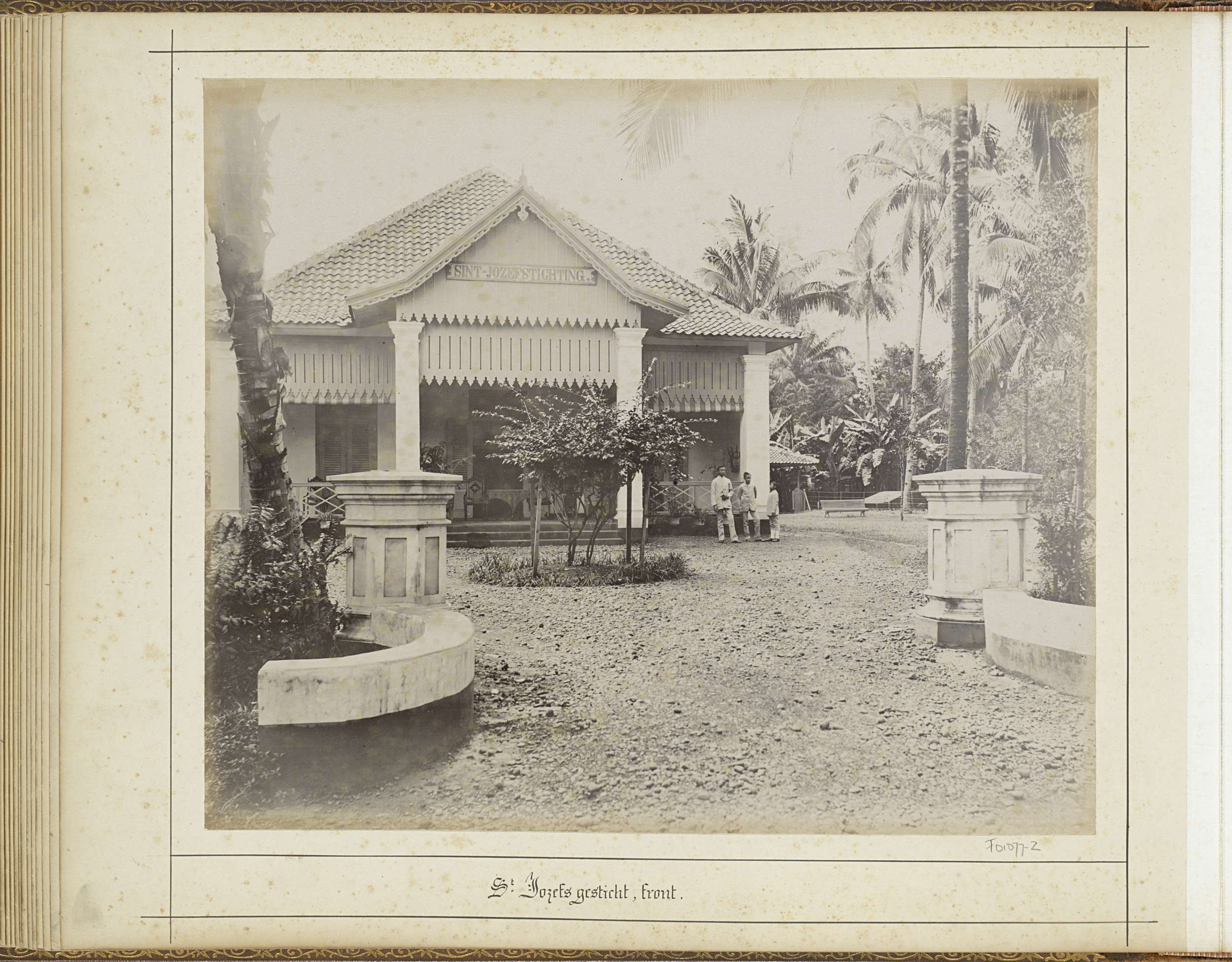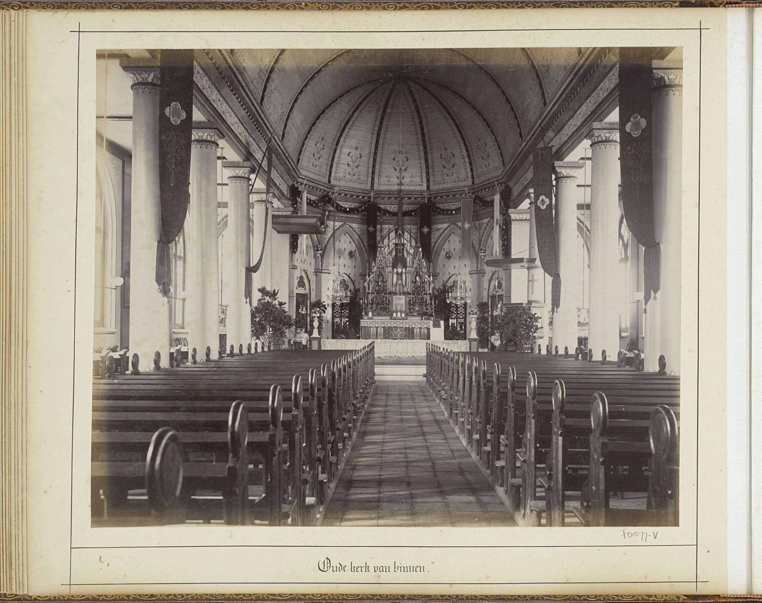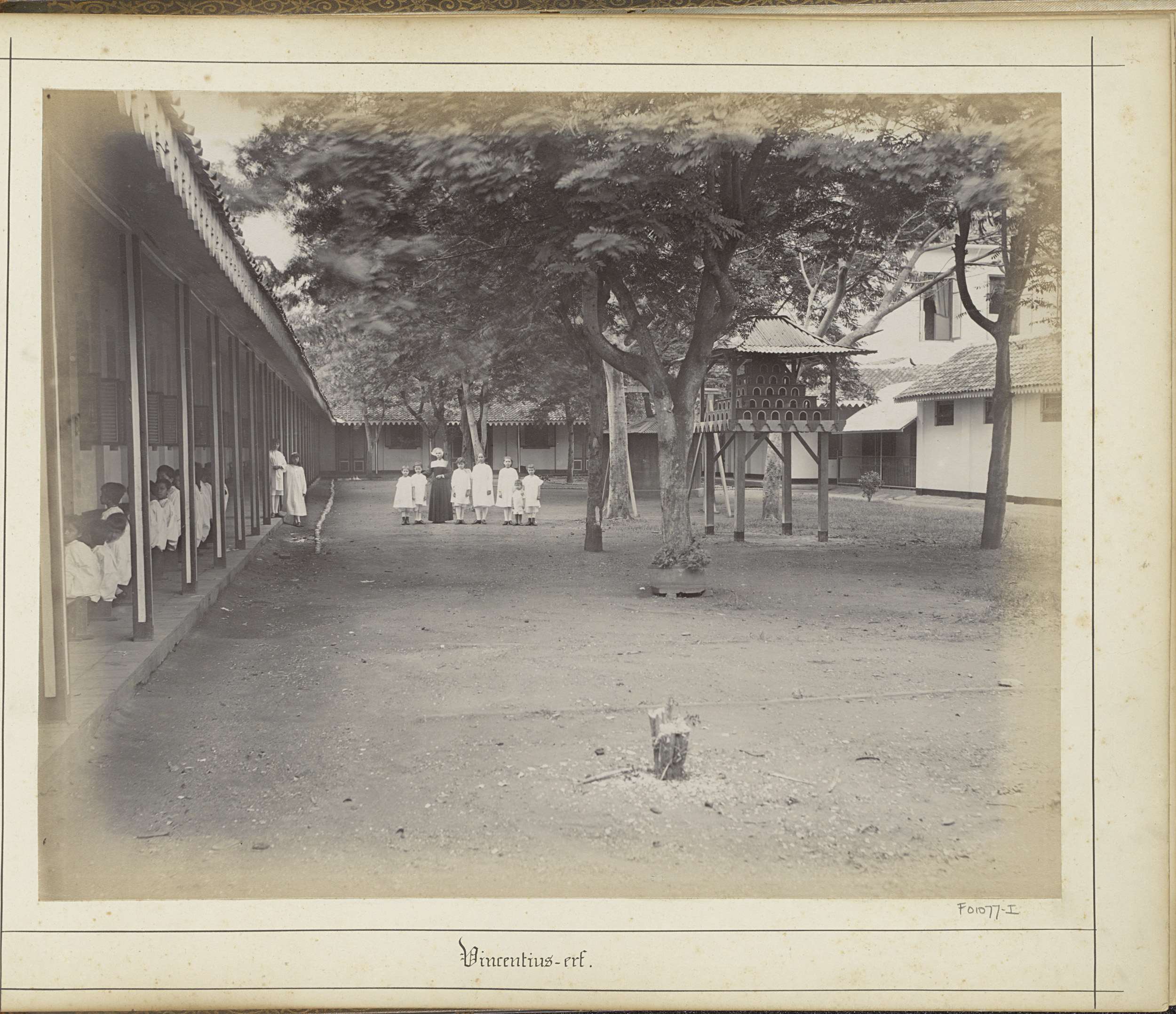 Zaal met banken in het Ursulinenklooster in Weltevreden