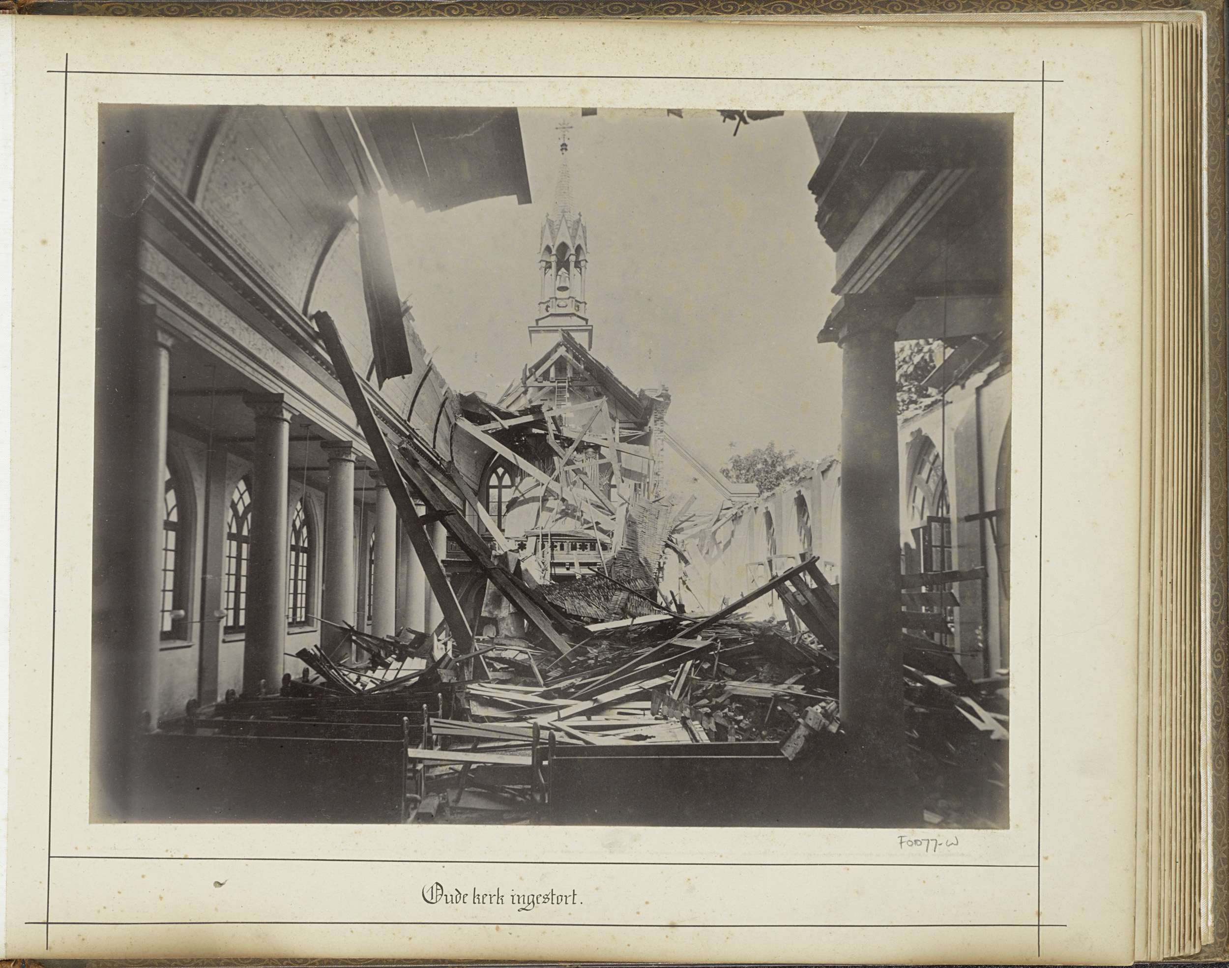 Puinhopen van de ingestorte rooms-katholieke kerk in...