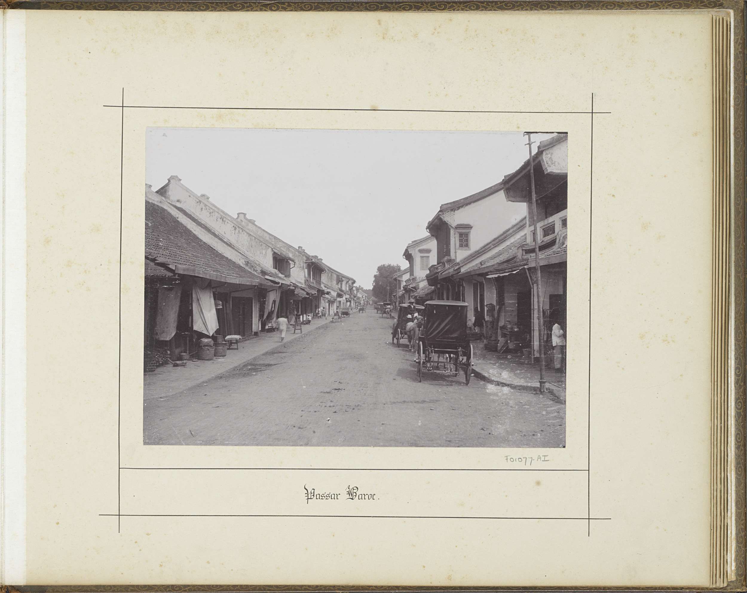Straatgezicht in Pasar Baru (Batavia) met winkels en...