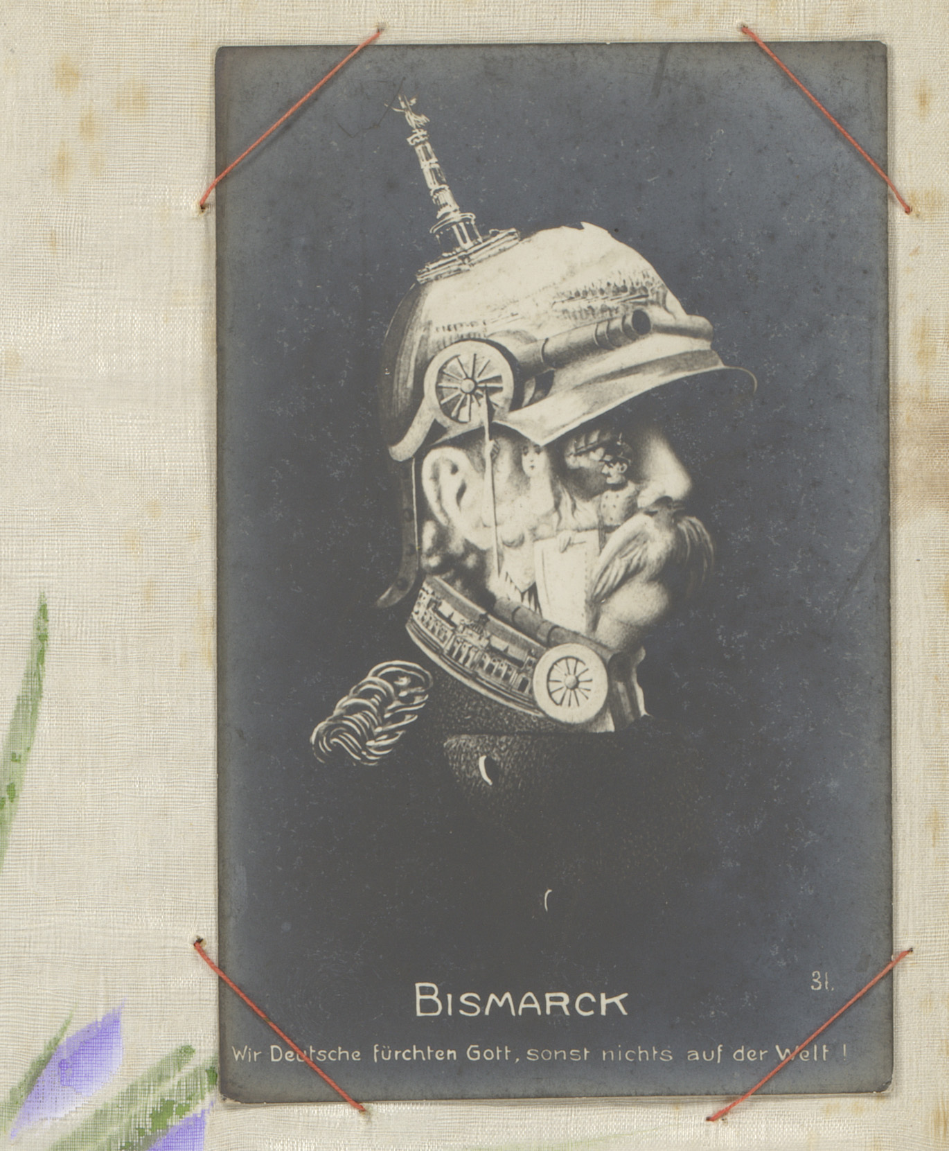 Fotoreproductie van een portret van Bismarck, opgebo...