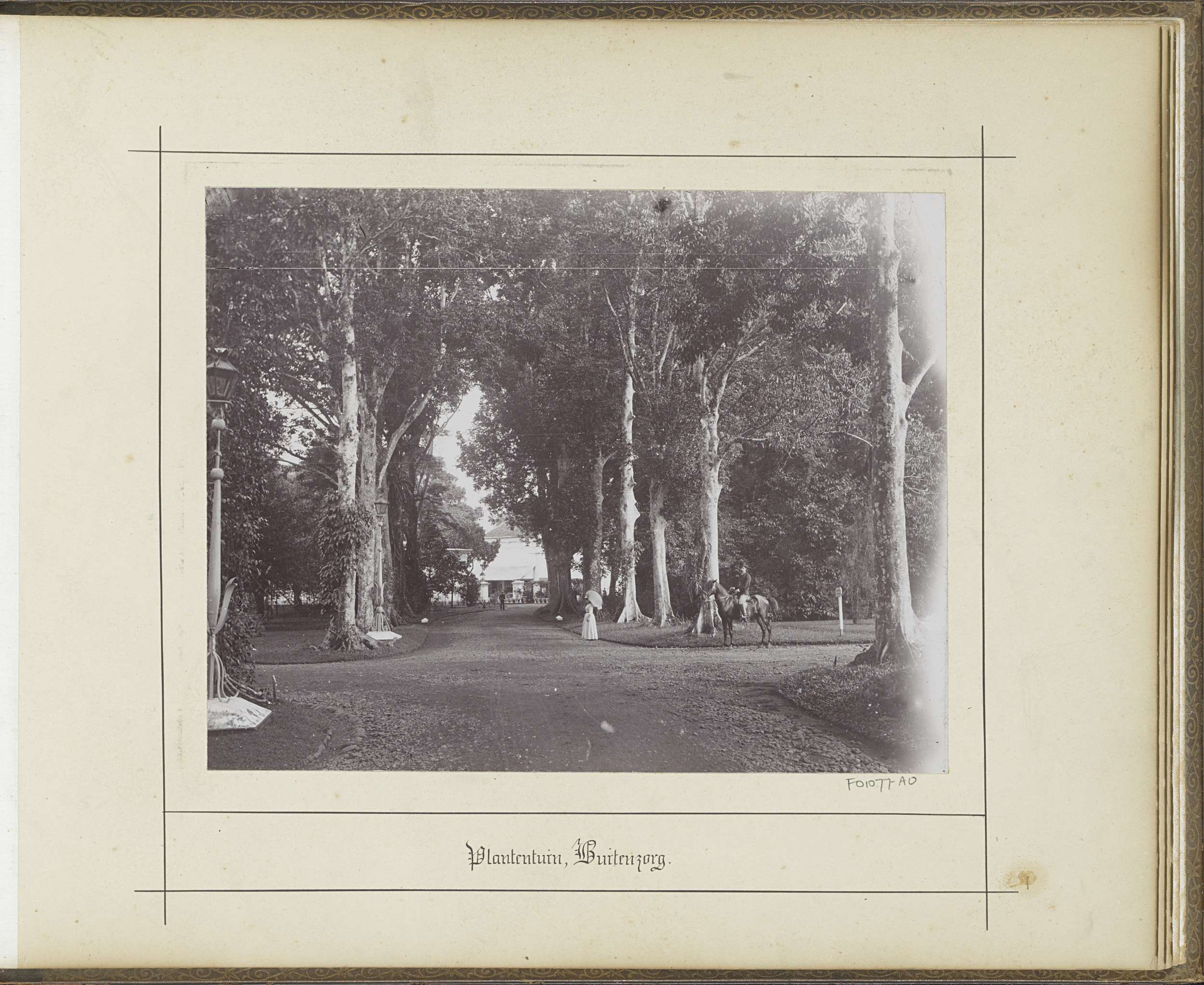 Vrouw en ruiter in 's Lands Plantentuin in Buitenzorg