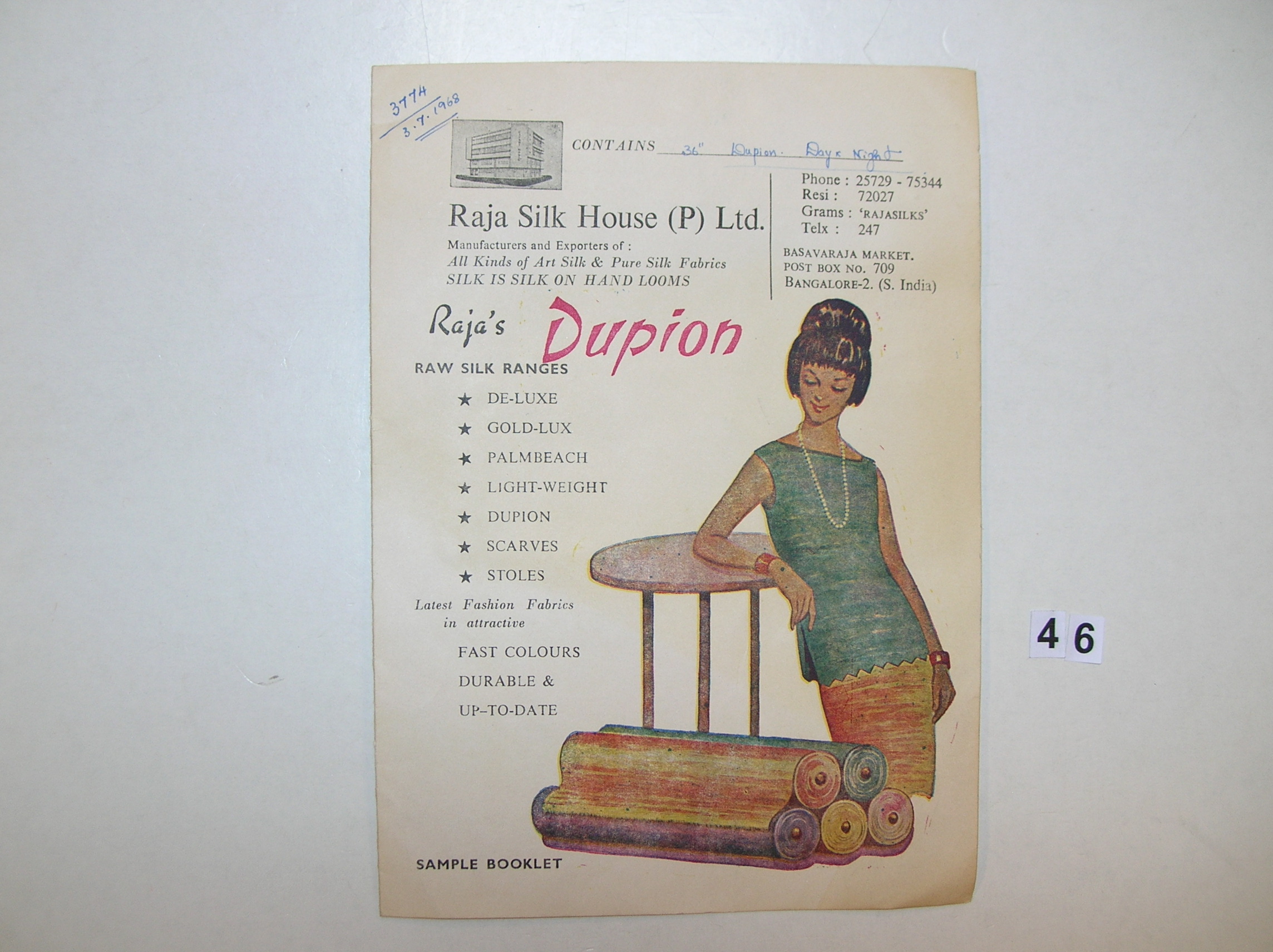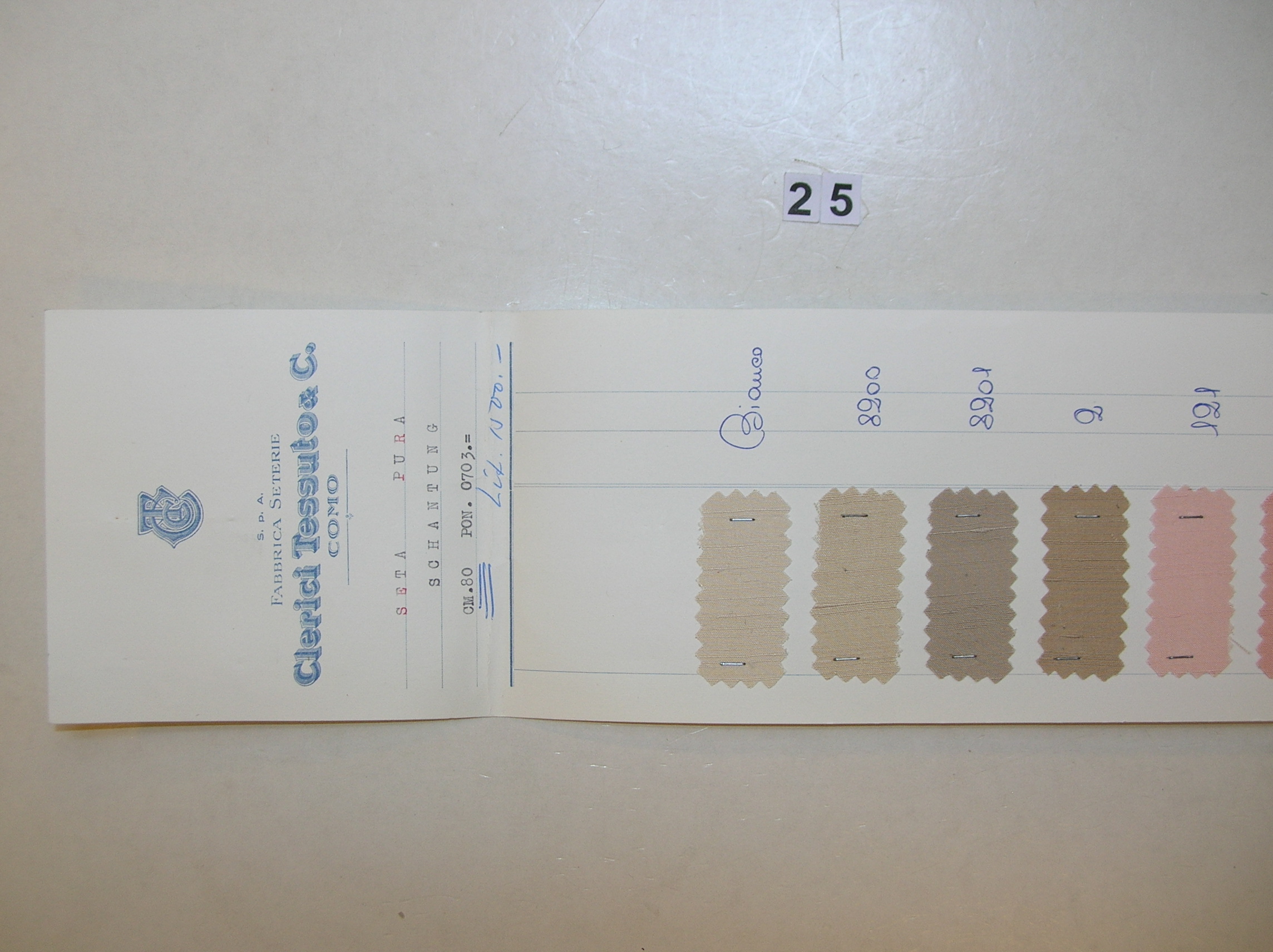 Stalenboek 'Shantung Pongee Silks' en prijslijsten