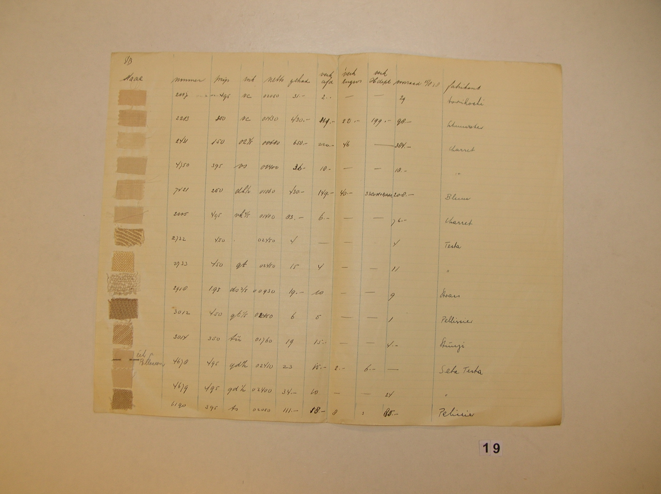 Stalenkaart 'Metzco stoffen'