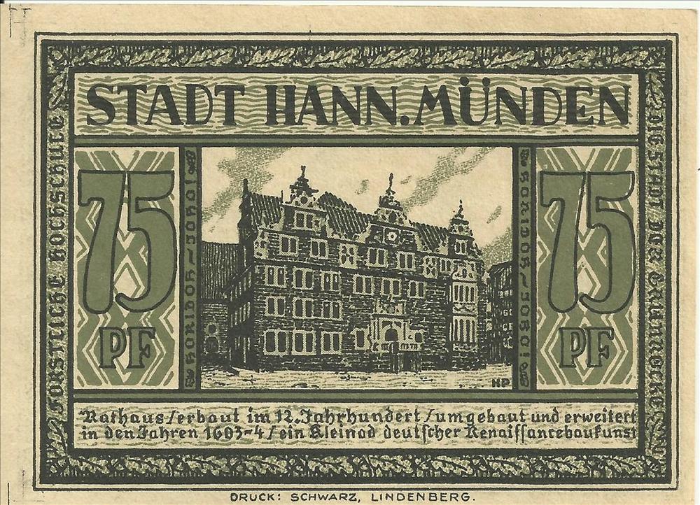 Noodgeld van de stad Hann. Münden, 75 penning, 1920