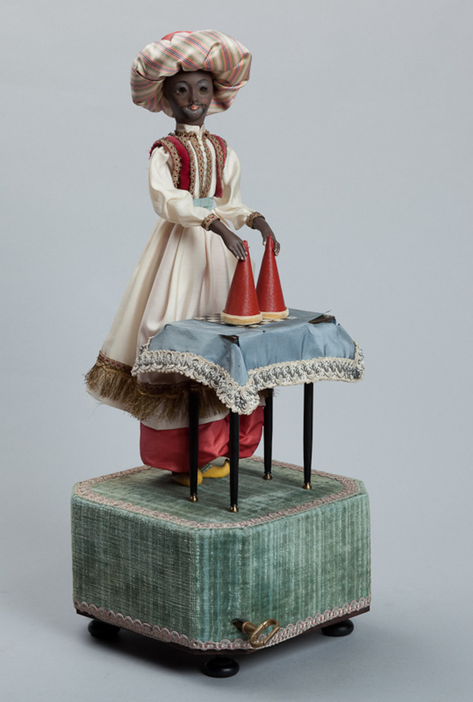 Goochelaar met twee punthoeden en twee dubbelstenen