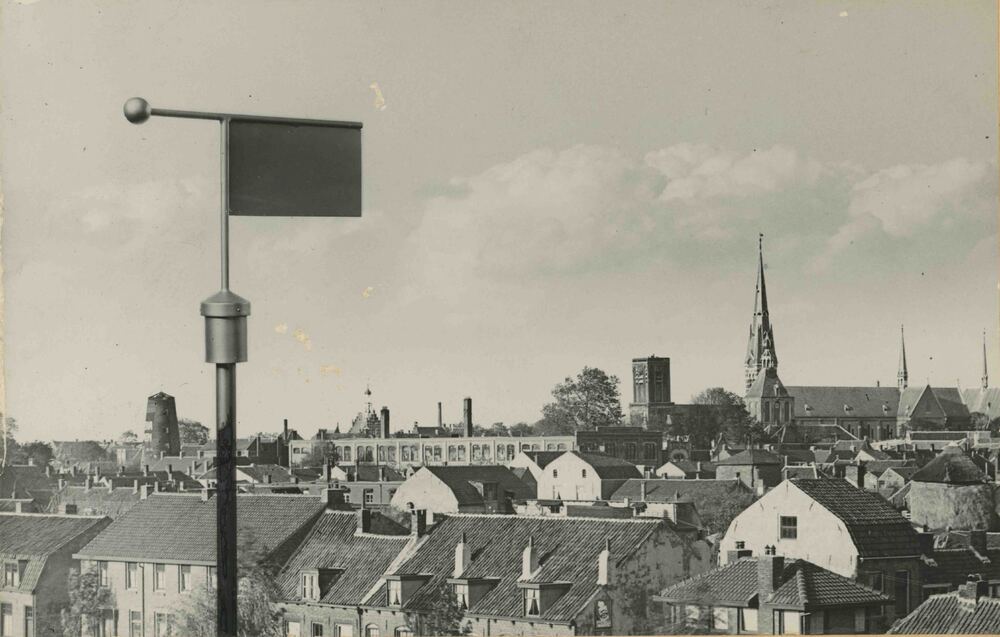 Foto, voorstellende stadsgezicht met windwijzer Gisp...