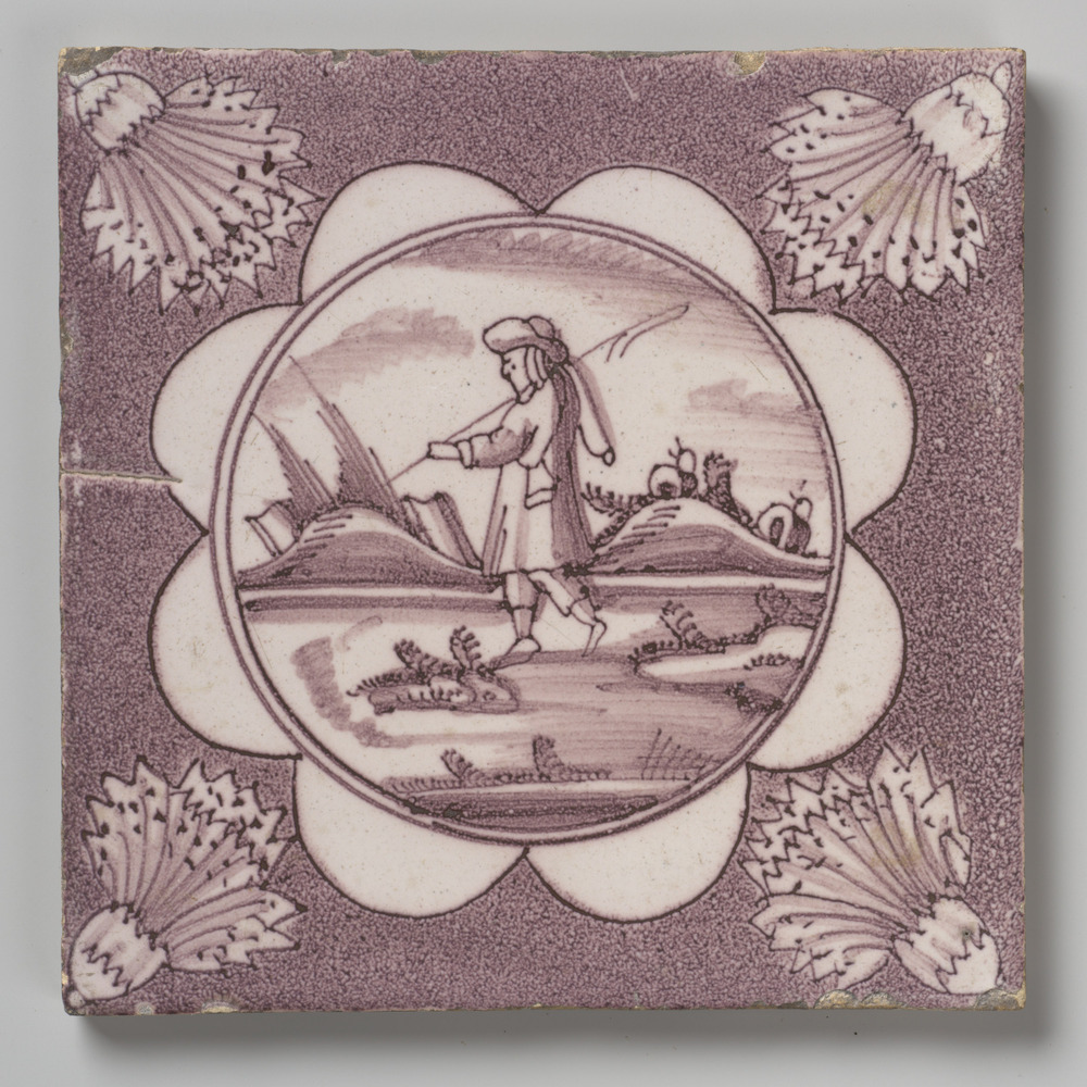 tegel van aardewerk met tinglazuur, voorstellende: h...