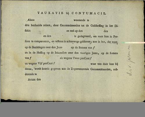 Taxatie bij contumatie, heffing ineens, 1802