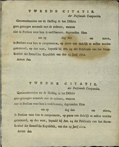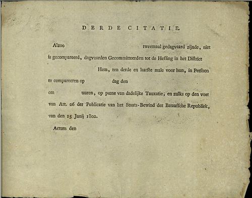 Citatie, heffing ineens, 1802