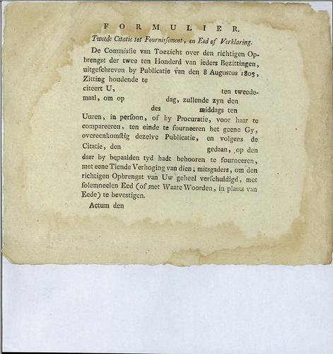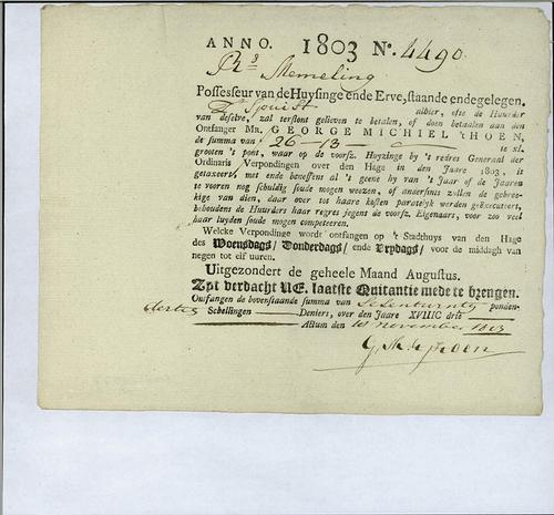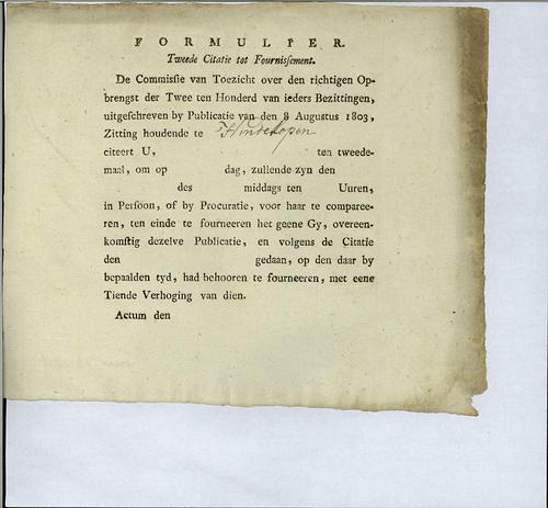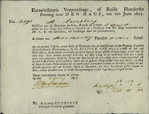 Aanslagbiljet, verponding, 1803
