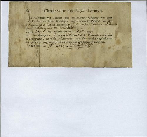 Citatie, vermogensbelasting, 1803