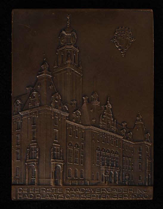 Plaquette op de inwijding van het nieuwe stadhuis te...
