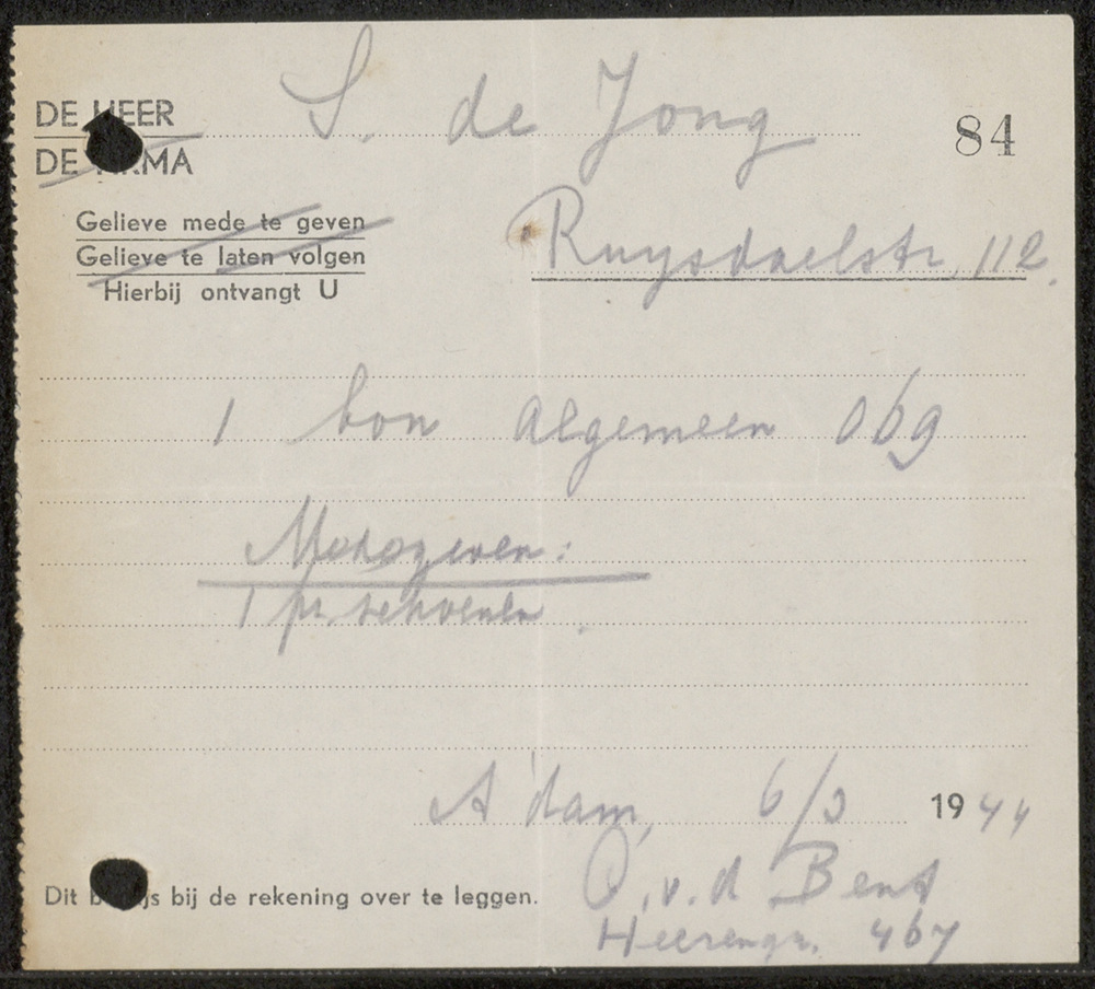 Kassabon van PERRY 24 mrt '44