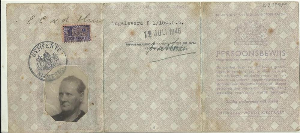 Persoonsbewijs op naam van Van der Sluis, E.V,