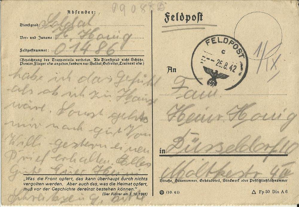 Brief van Heinrich (soldaat) Honig aan Martha Honig ...