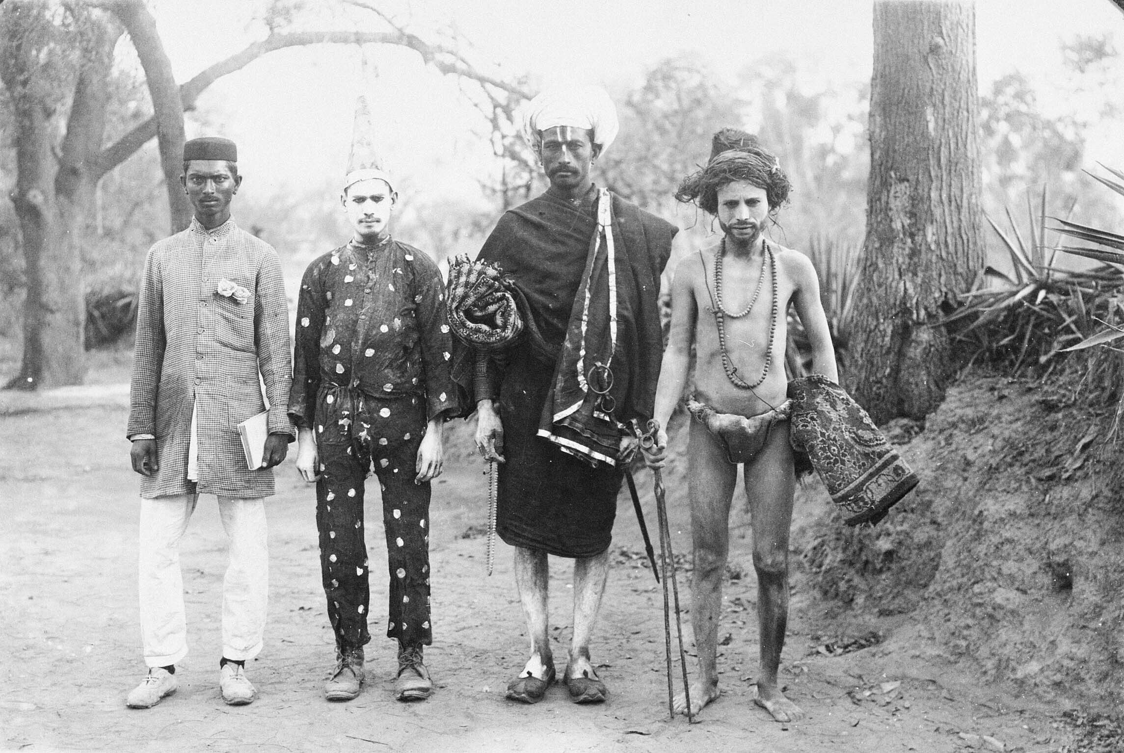 Groepsportret met mannen in de vier stadia van het l...