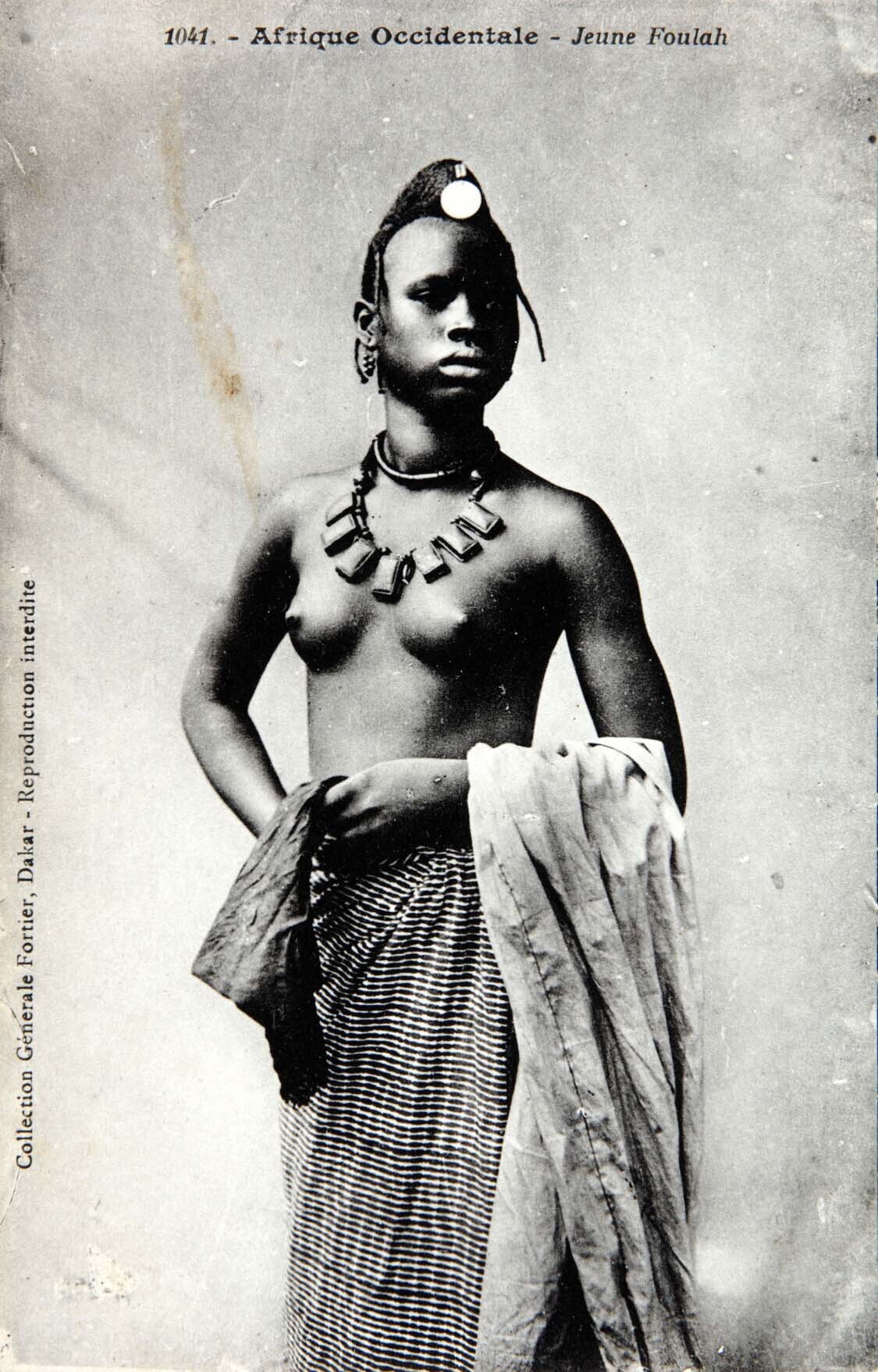 Portret van een jonge Foulah vrouw met halsketting e...