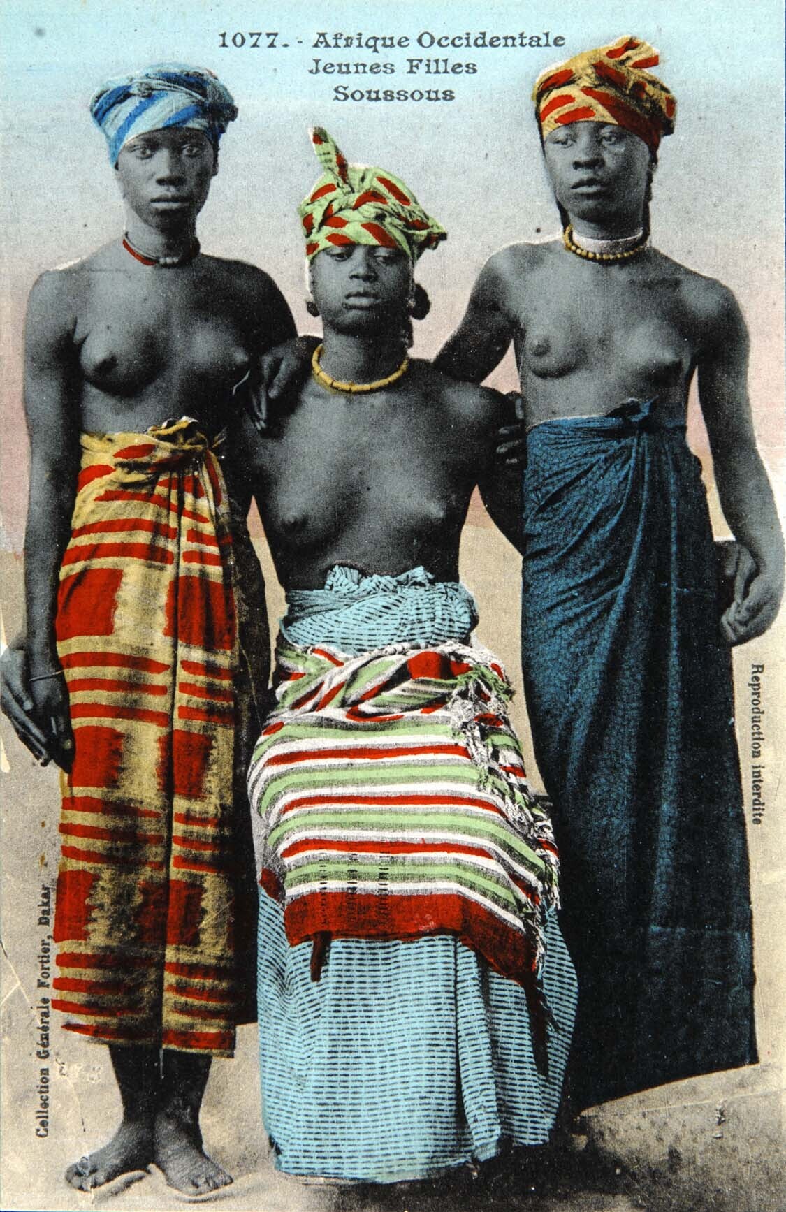 Studioportret van drie jonge Susu vrouwen