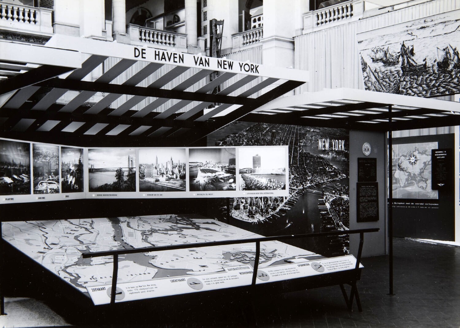 Opstelling over het havengebied van New York op de t...