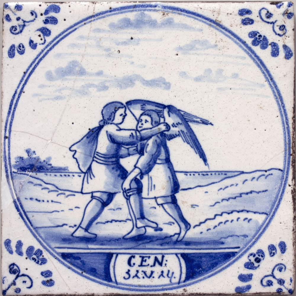 tegel van keramiek met tinglazuur, voorstellende: Ja...