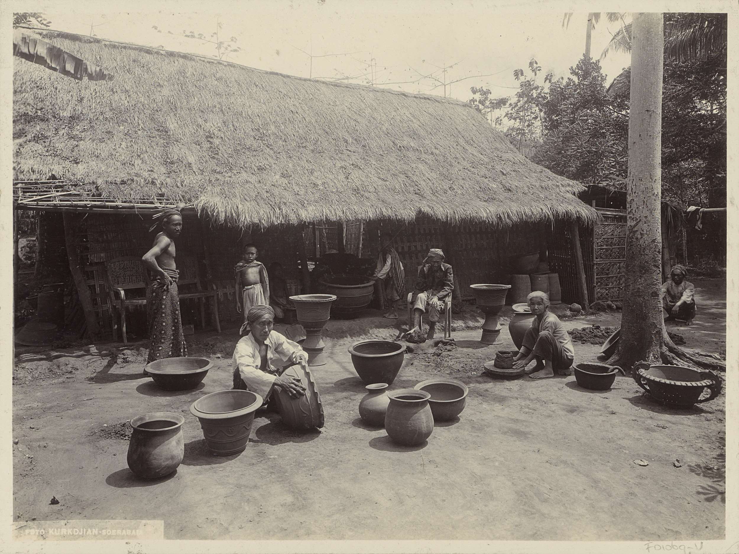 Pottenbakkers op een erf, mogelijk in Surabaya