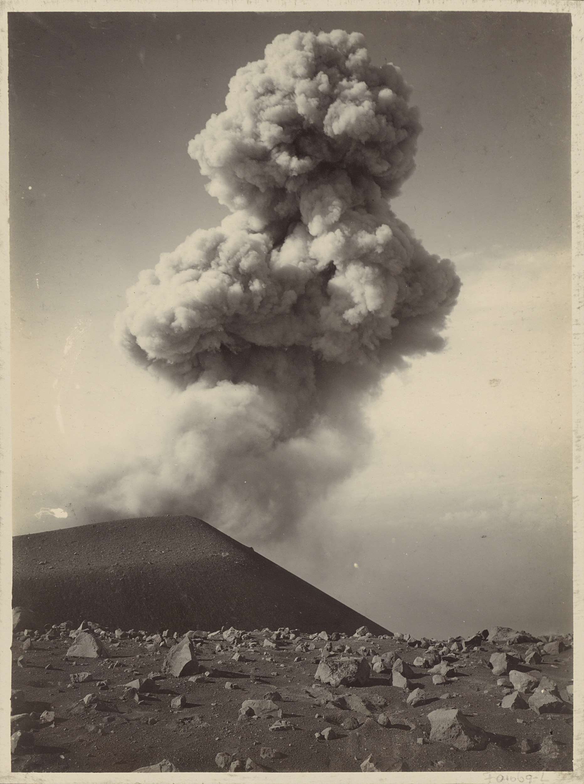 Rokende vulkaan met puin op de voorgrond in Nederlan...