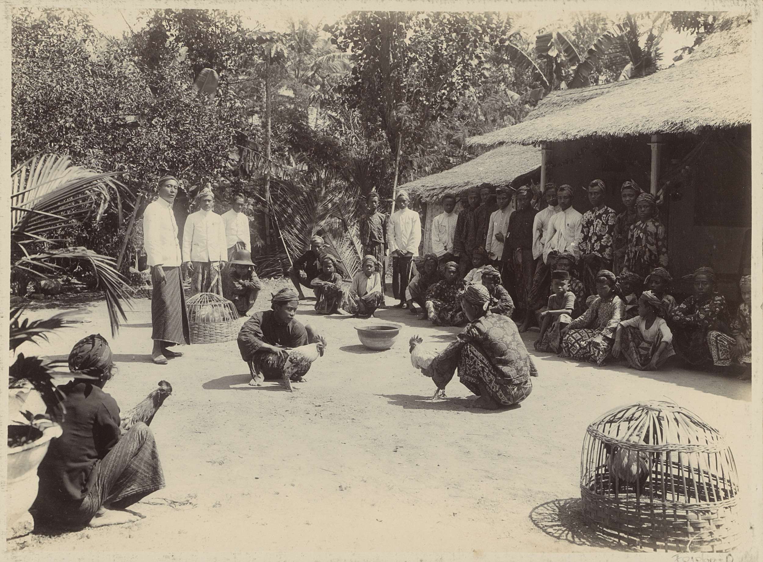 Mannen bij een hanengevecht op een erf in Nederlands...