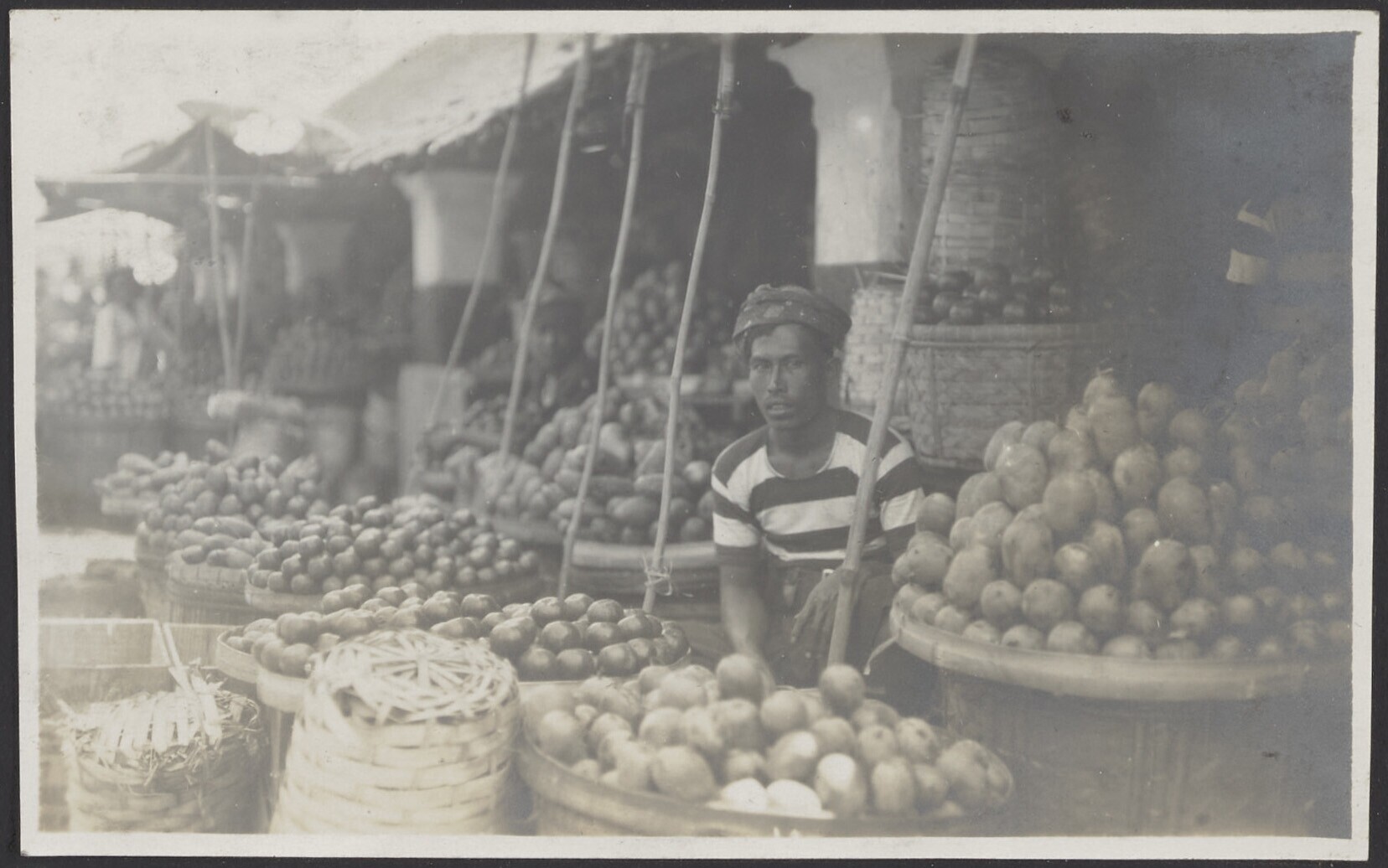Javaanse koopman biedt allerlei vruchten aan op de m...