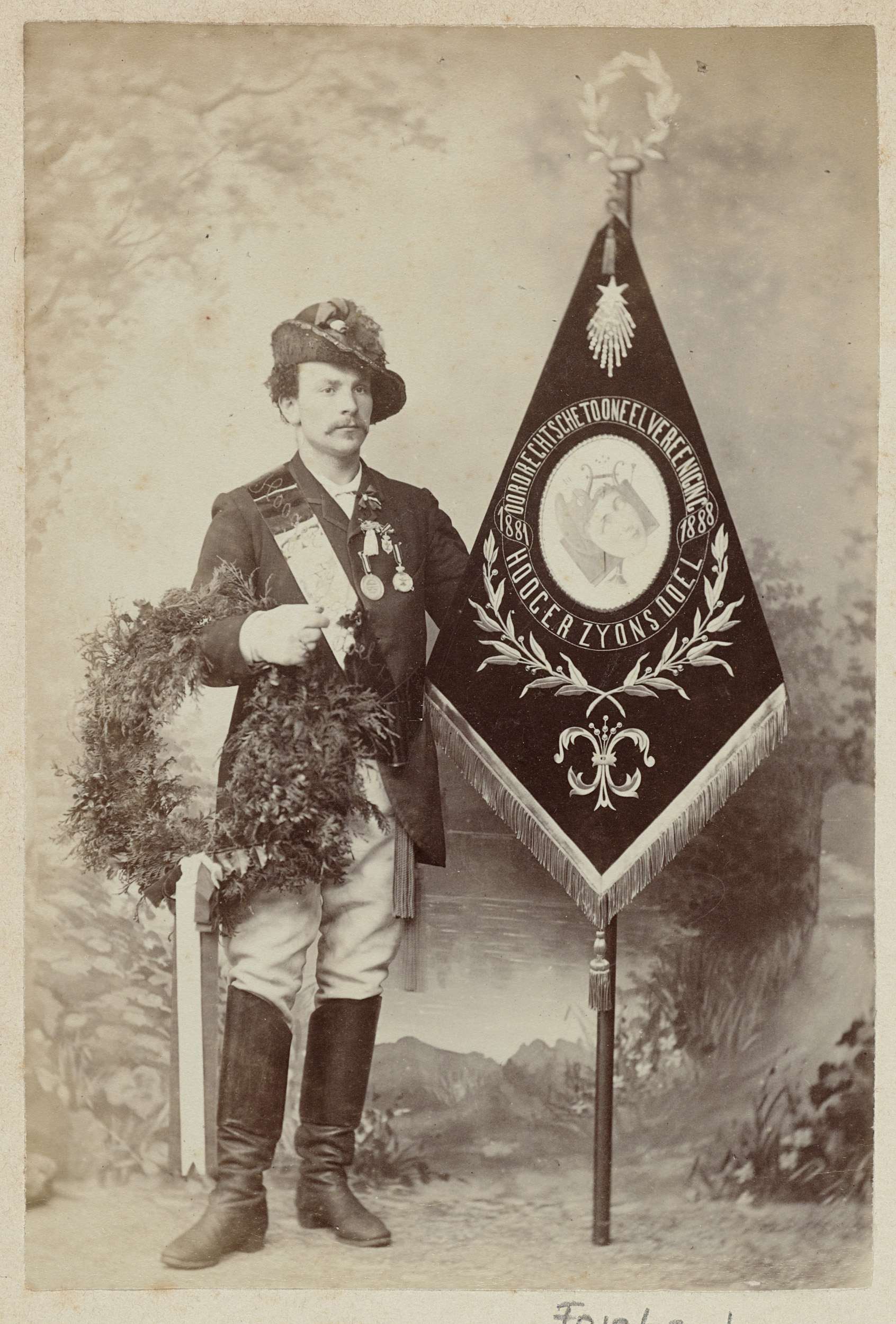 Portret van een onbekende man met vaandel van de Dor...