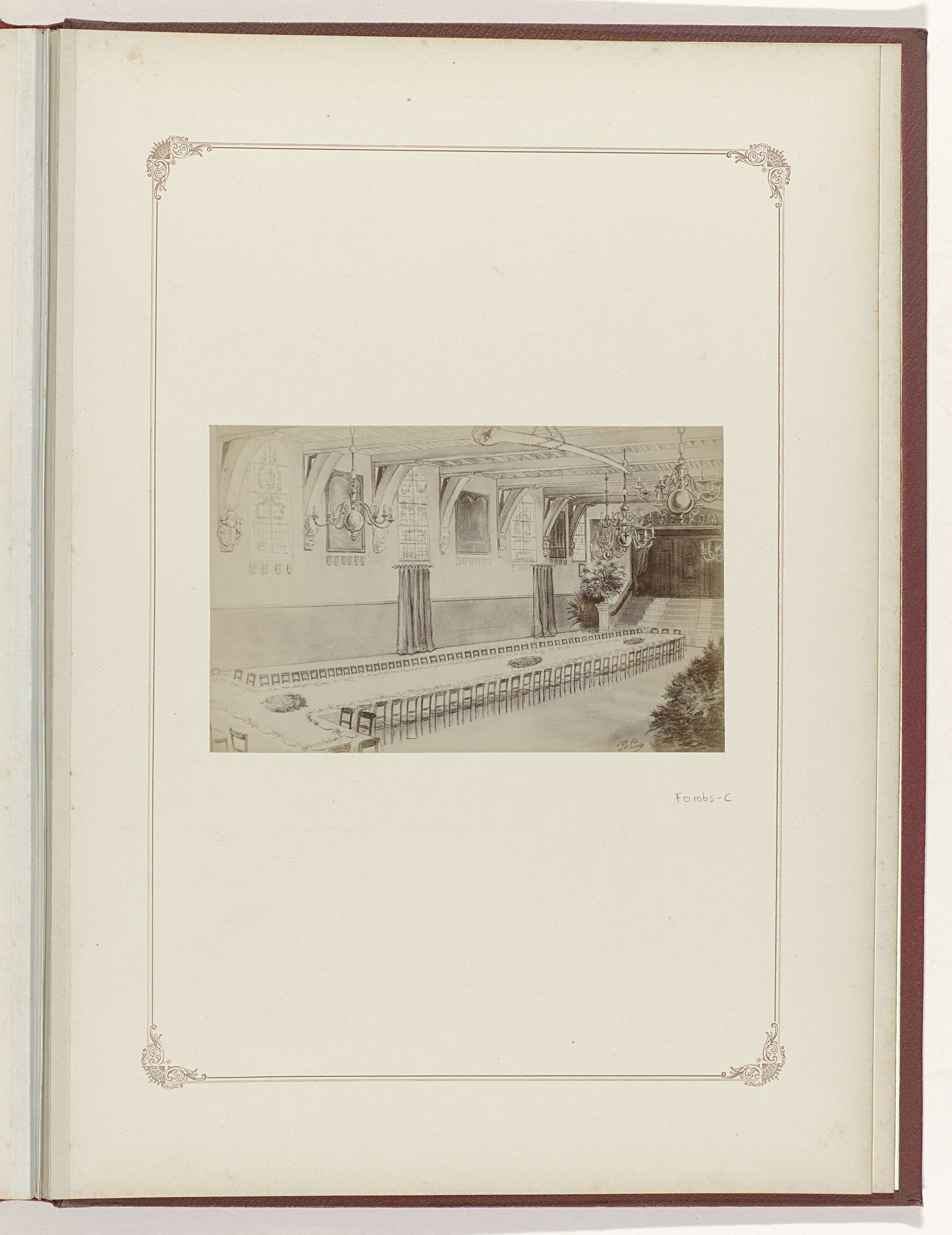 Fotoreproductie van een tekening van het interieur v...