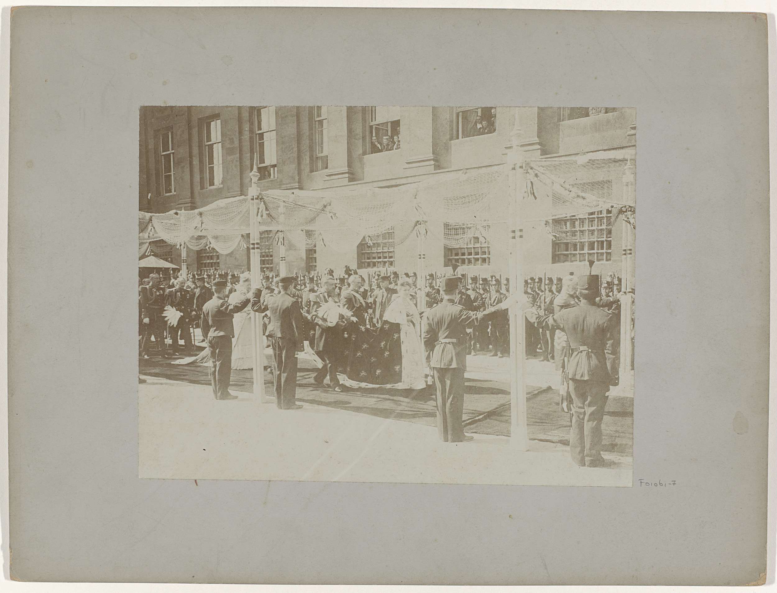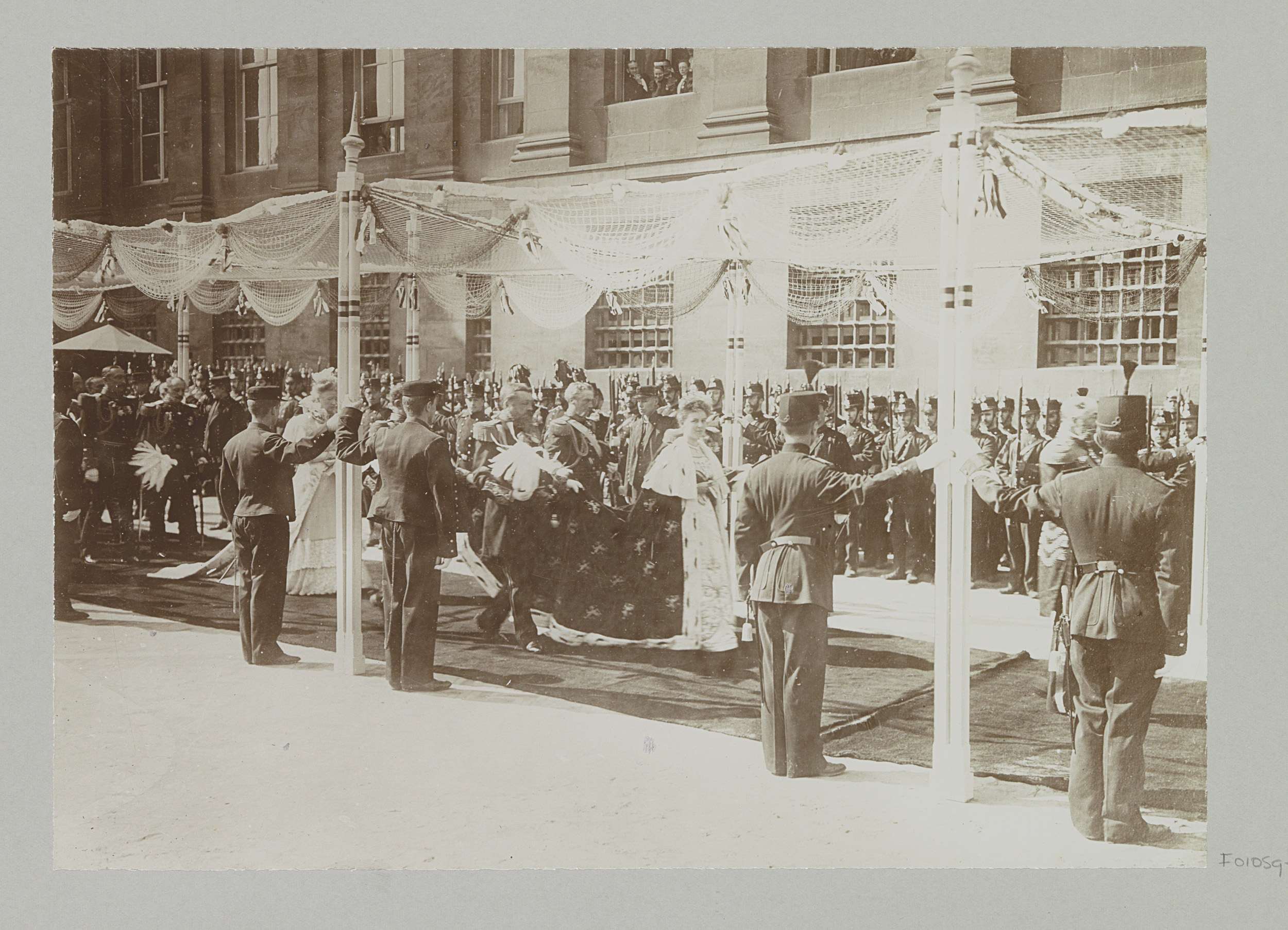 Wilhelmina wandelt onder baldakijn voor het Koninkli...