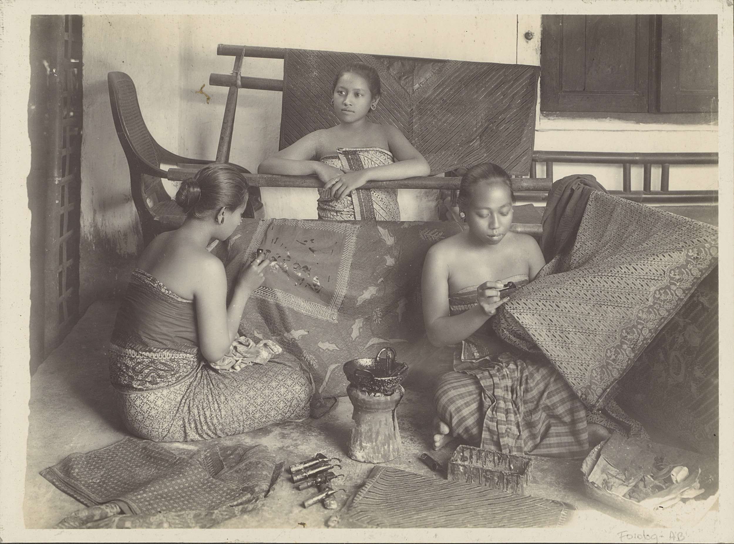 Drie batikkende vrouwen