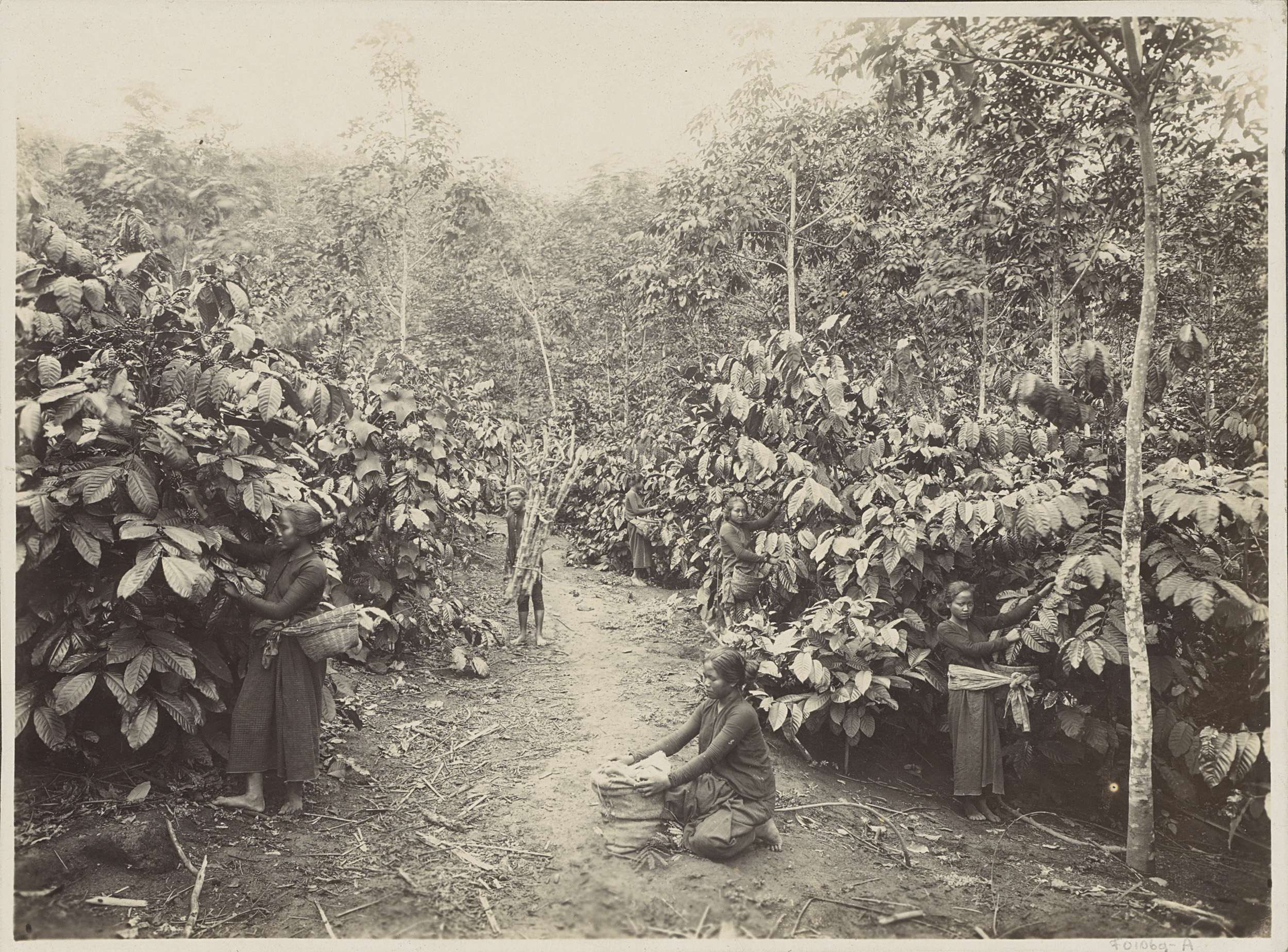Vrouwen aan het werk op een plantage in Nederlands-I...
