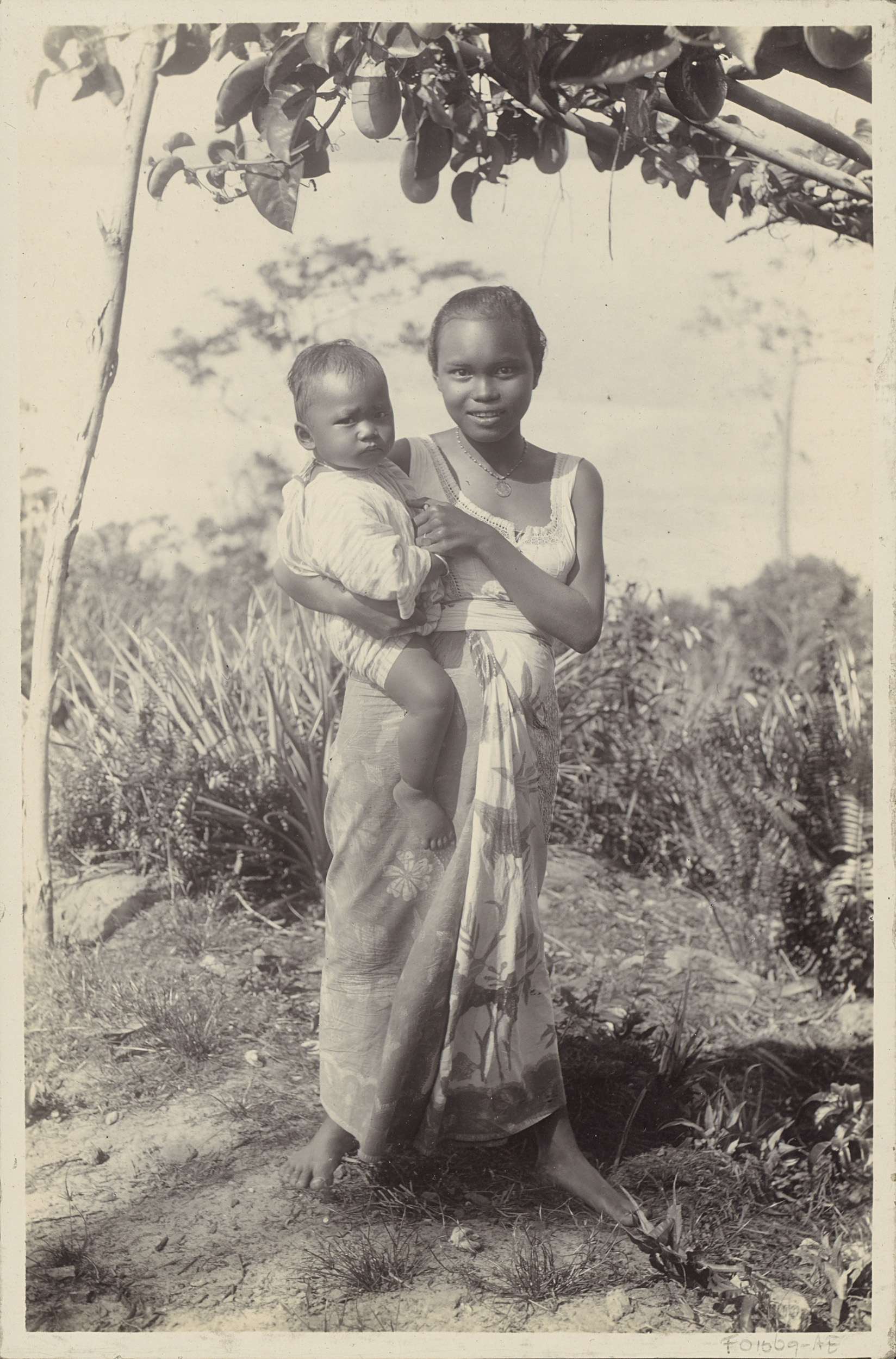 Portret van een vrouw met kind in Nederlands-Indië