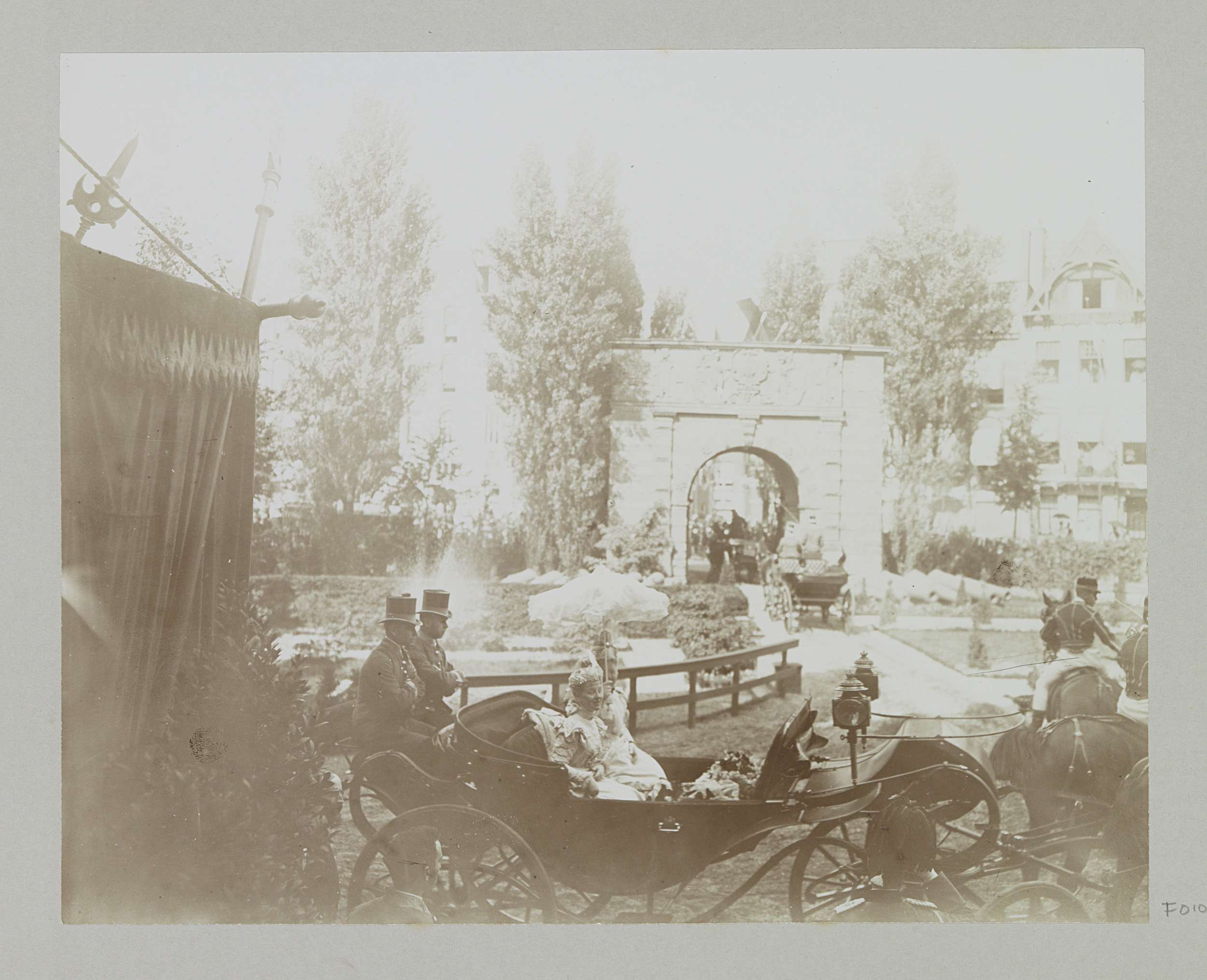 Open rijtuig met koningin Wilhelmina en koningin-moe...