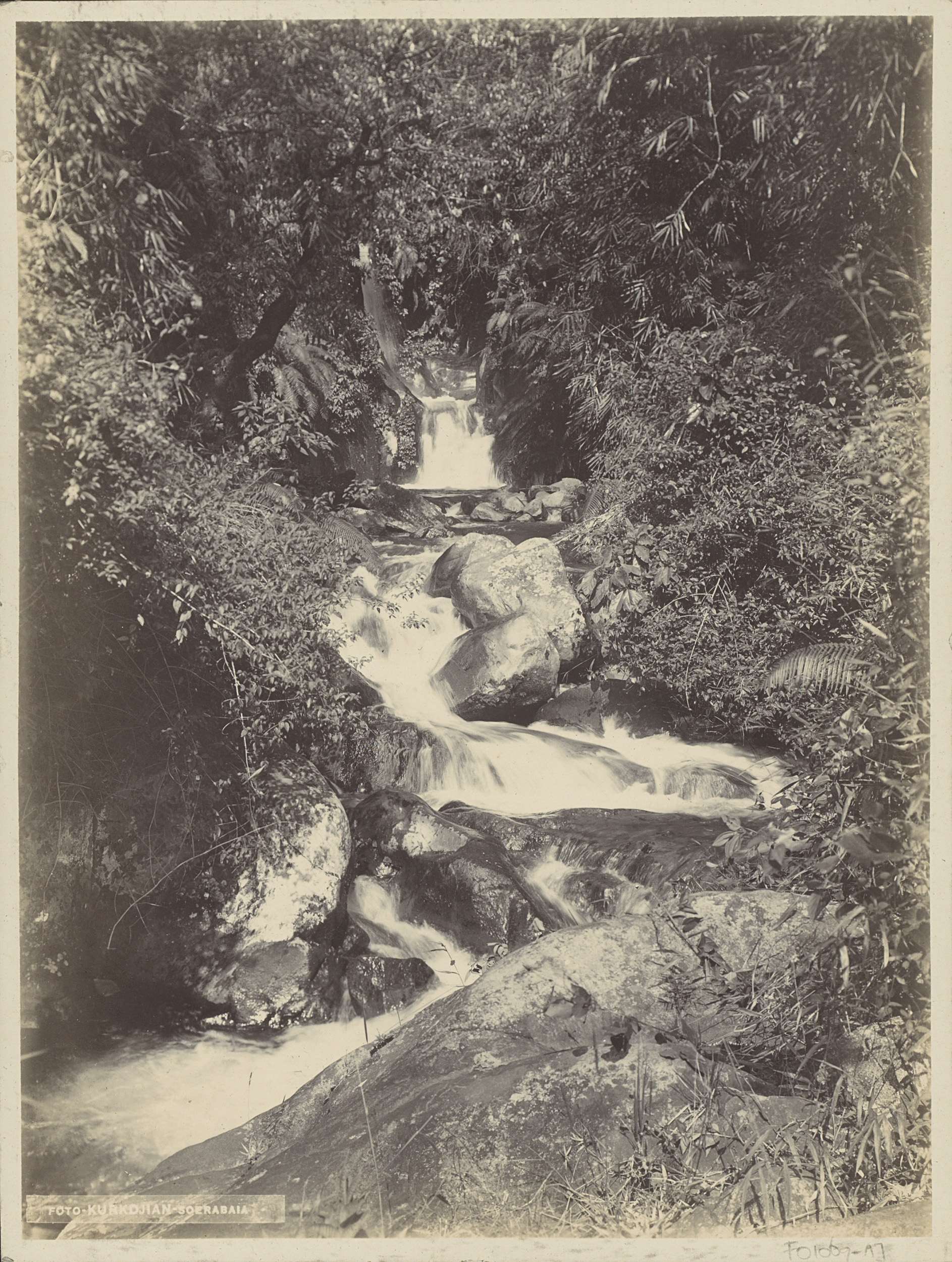 Waterval in een bos in Nederlands-Indië