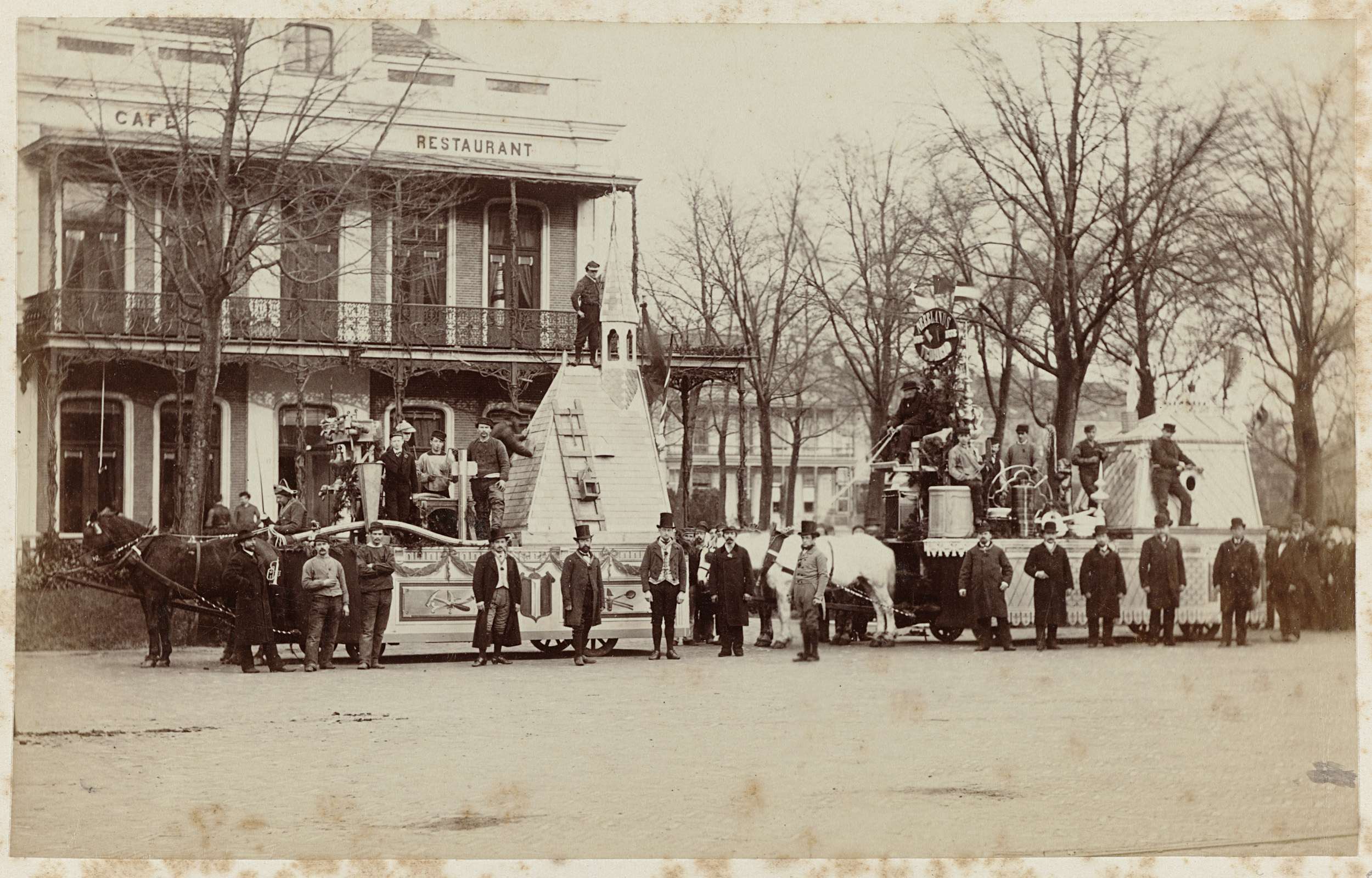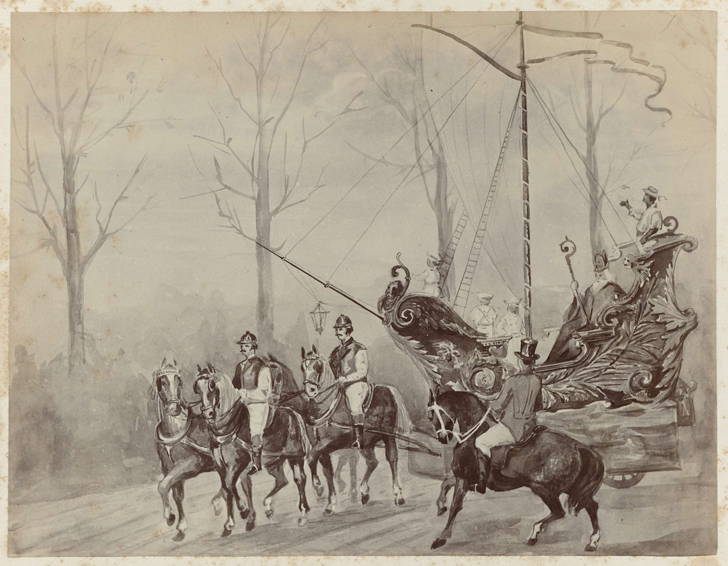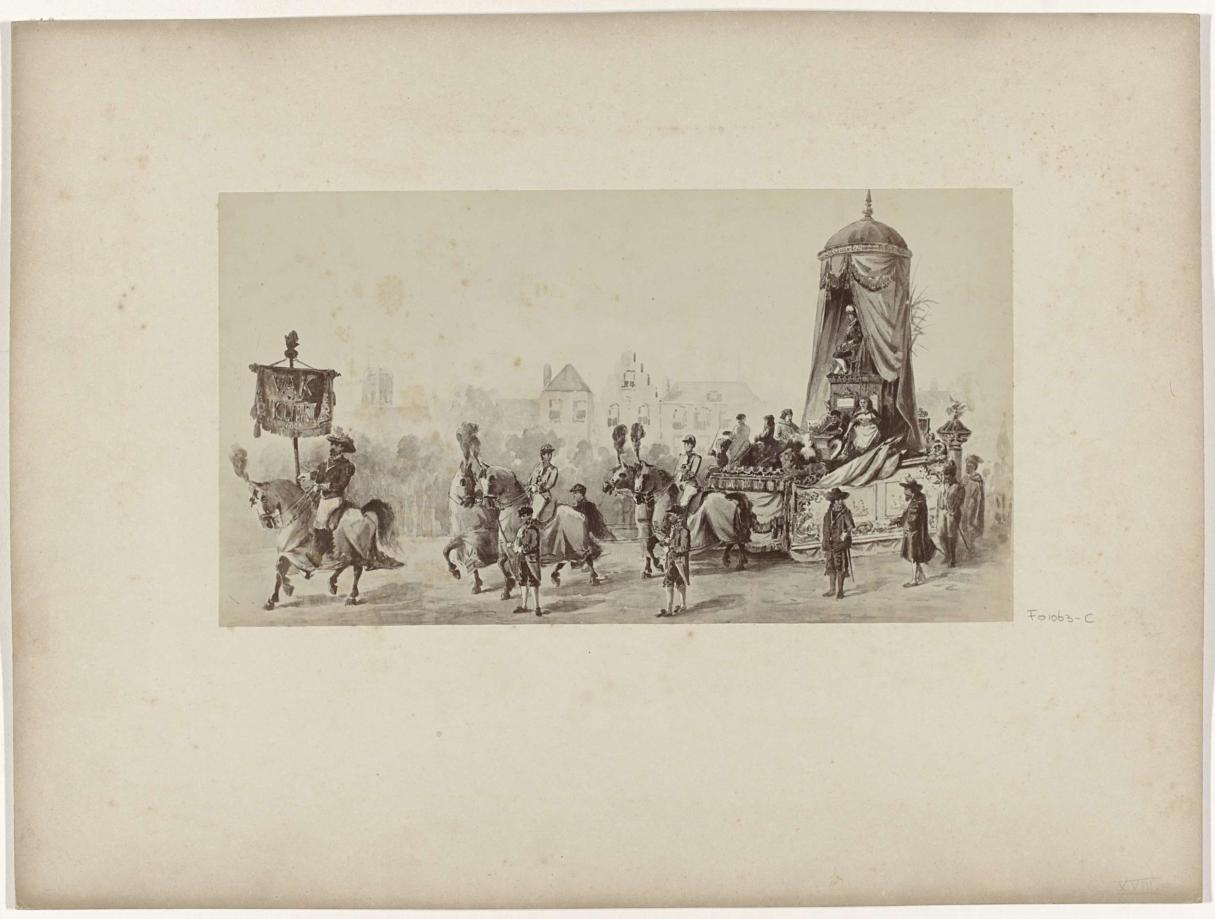 Fotoreproductie van een aquarel van een praalwagen v...